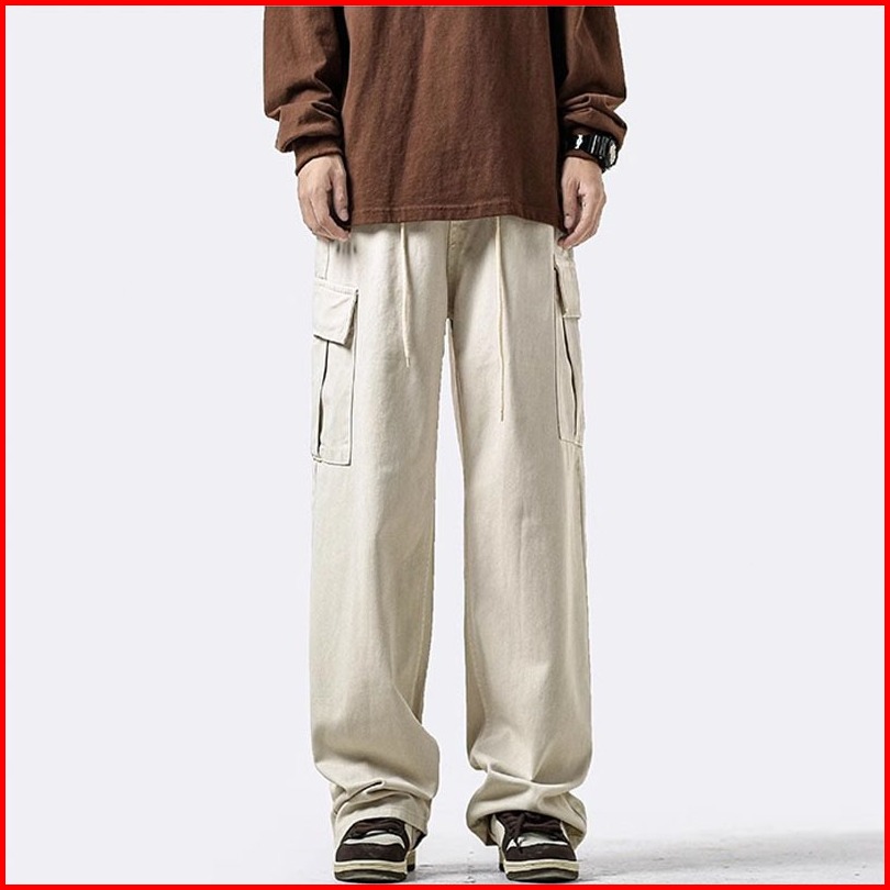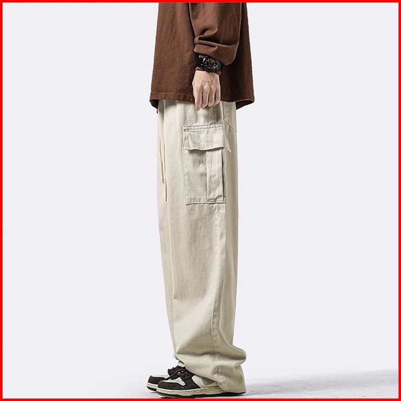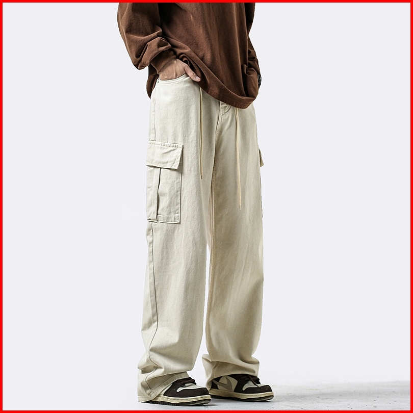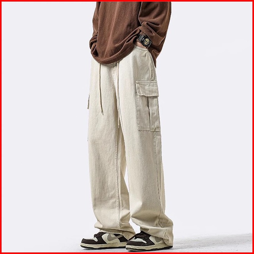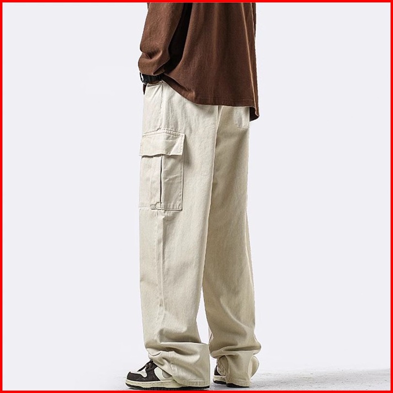 Celana Cargo Pria Celana Cargo Panjang Pria Celana Lari Pria Overall Khaki Retro Jepang Celana Oversize Amerika Trendi C