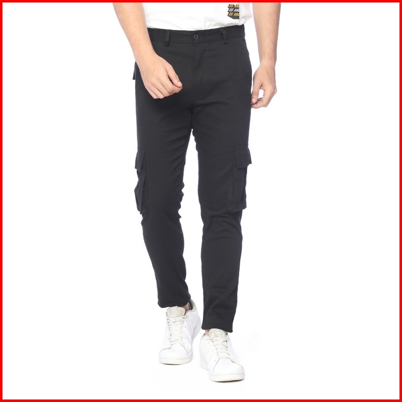Code Male - Barnet Cargo Pants Celana Cargo Panjang Pria Stretch Hitam