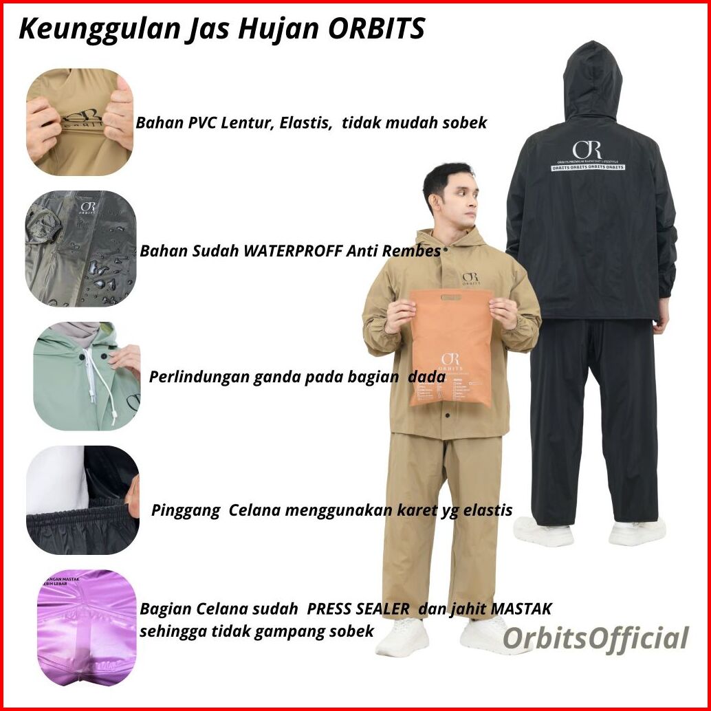 Orbits Jas Hujan Raincoat Mantel Dewasa Pria Wanita Bahan Pvc Karet Lentur Elastis Tidak Mudah Sobek