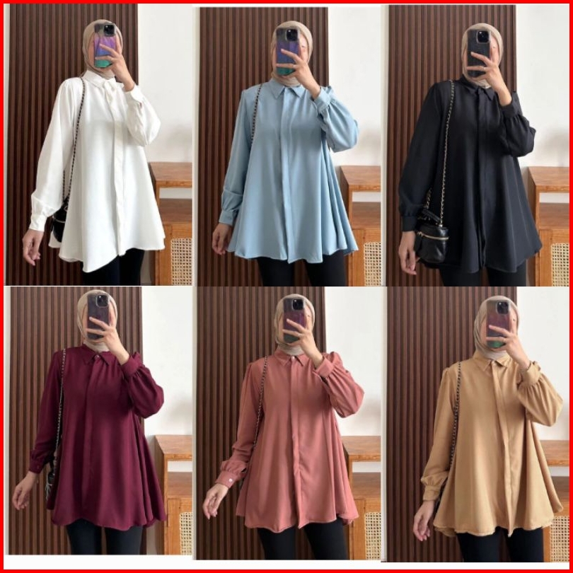 Kinka Shakilla Blouse Polos Kemeja Atsan Wanita Kekinian