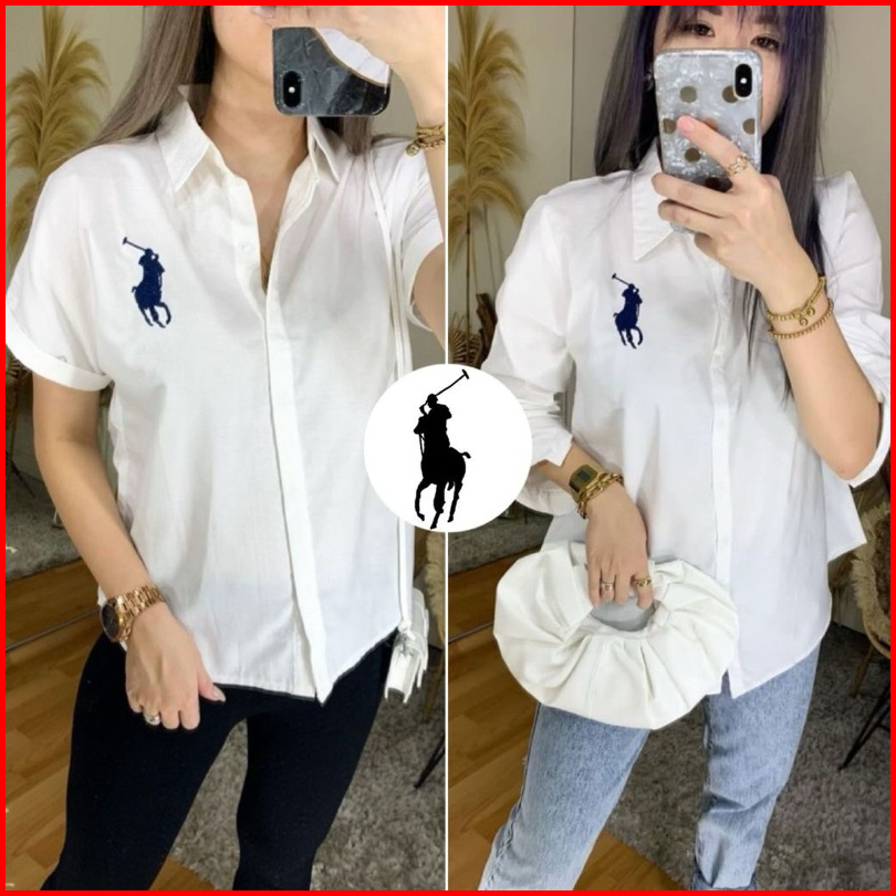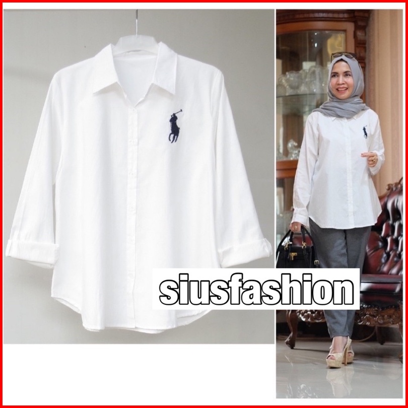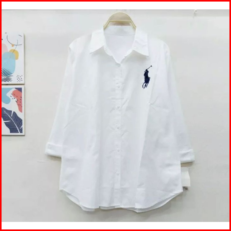 Kemeja Wanita Bordir Polos Casual - Kemeja Katun Oxd Premium Kekinian 755