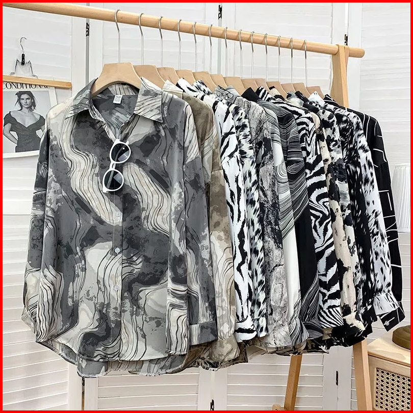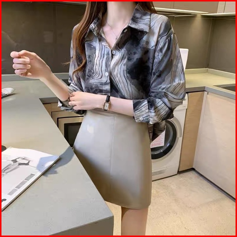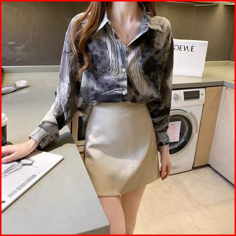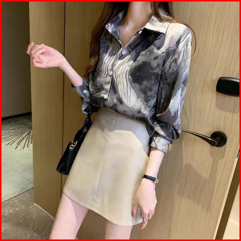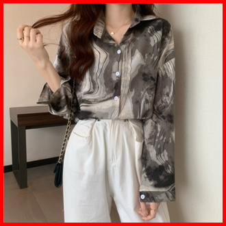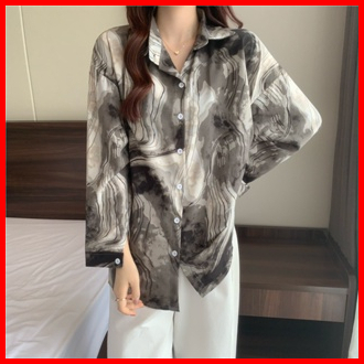 Xiaozhainv Wanita Korea Retro Long Sleeves Tinta Percikan Casaul Kemeja Baju Blouse Wanita Terbaru Baju Atasan Wanita At