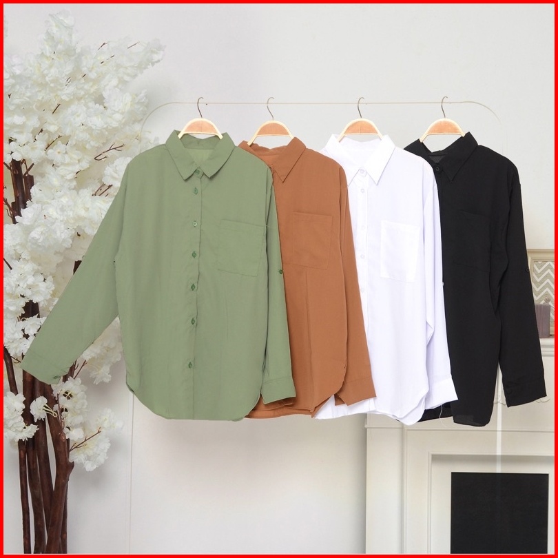 Kemeja Wanita Polos Lengan Panjang Casual Putih Grosir Sandaang