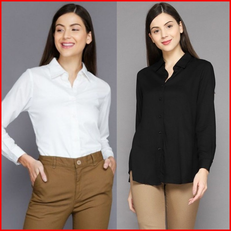 Kemeja Wanita Katun Rayon Twill 30s Putih Hitam