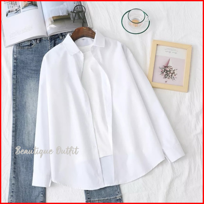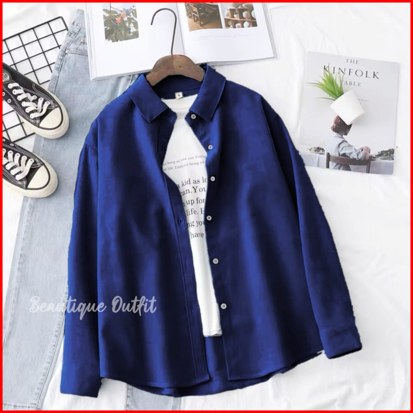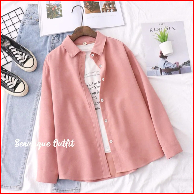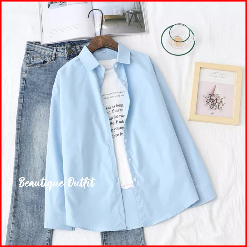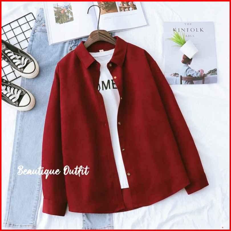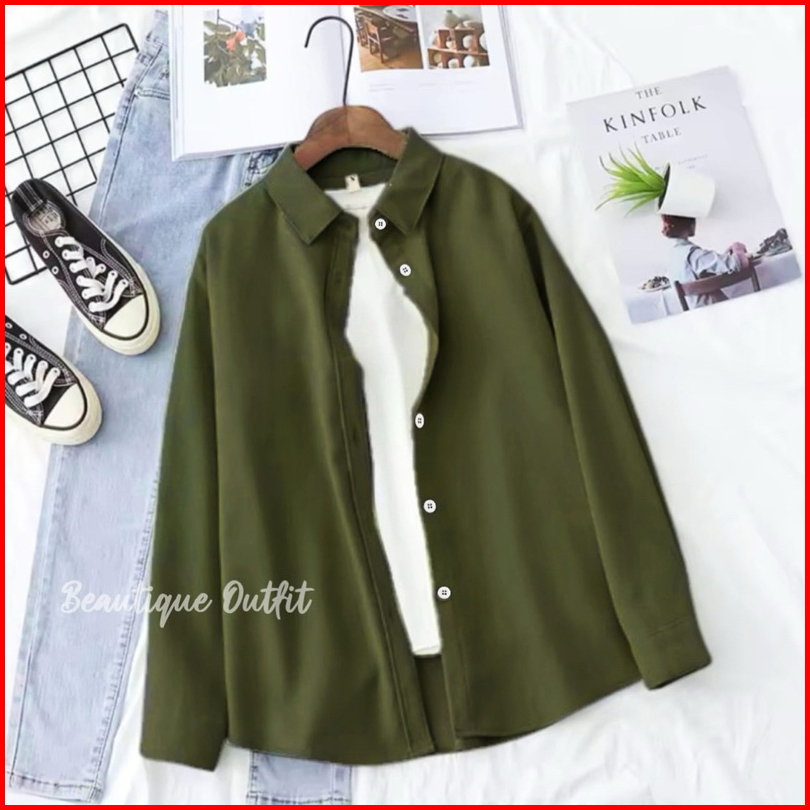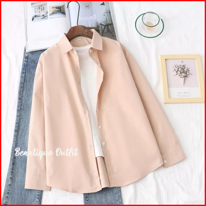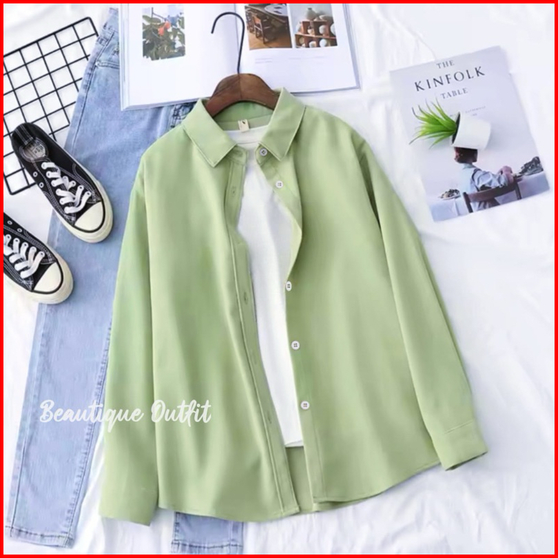 Kemeja Wanita Polos Kemeja Basic Kemeja Lengan Panjang Wanita Katun Simple Hitam Putih Navy Pink Marun Sage Atasan Casua