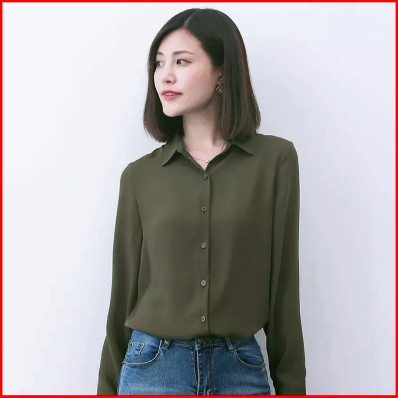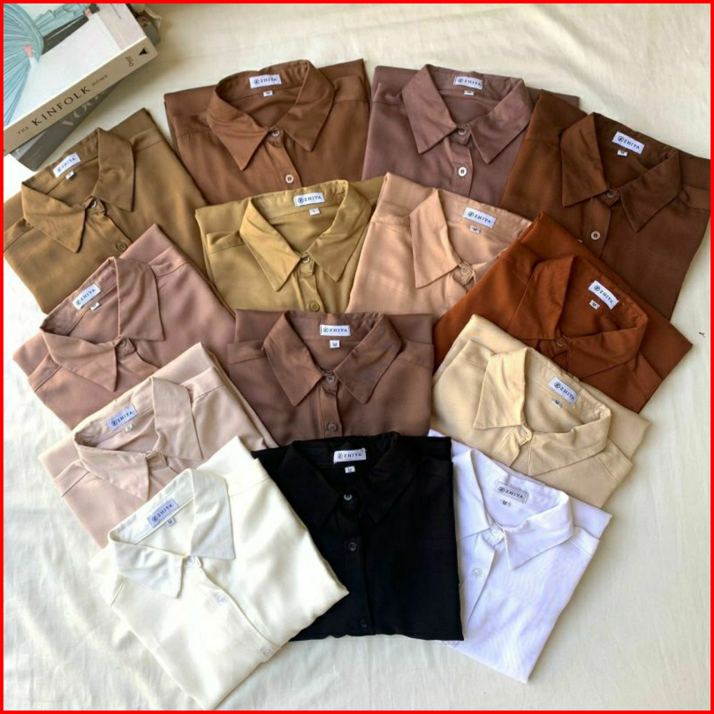 Kemeja Polos Wanita Atasan Lengan Panjang Botega Strech Wanita Shakilla Twill