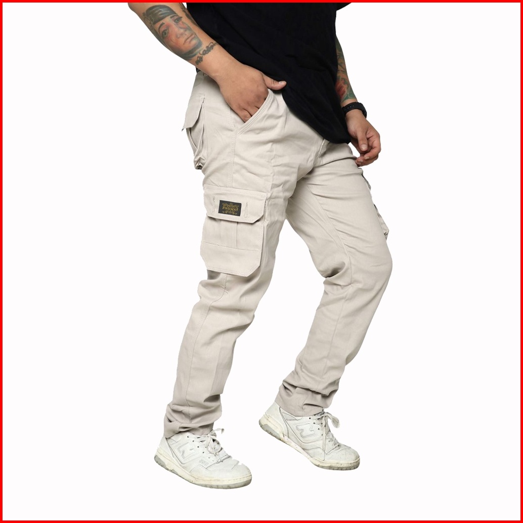 Zweckout Label - Cargo Pants Pria Celana Cargo Panjang Pria Jumbo Slim Fit Kargo Big Size Hijau Cream