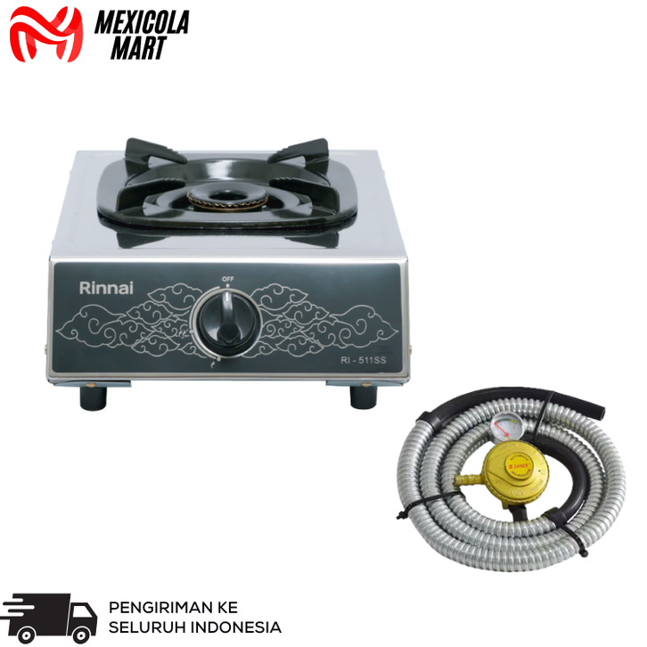 [Star]Kompor Gas 1 Tungku Rinnai RI 511SS Stainless Steel Sudah Berikut Dengan Selang Regulator