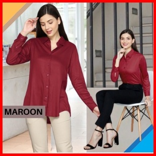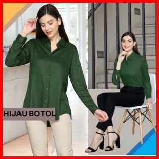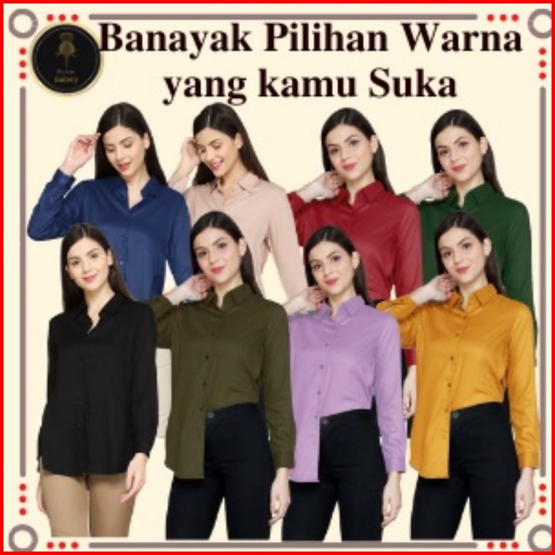 Kemeja Wanita Polos Putih Hitam Atasan Blouse Casual Lengan Panjang Basic Katun Rayon