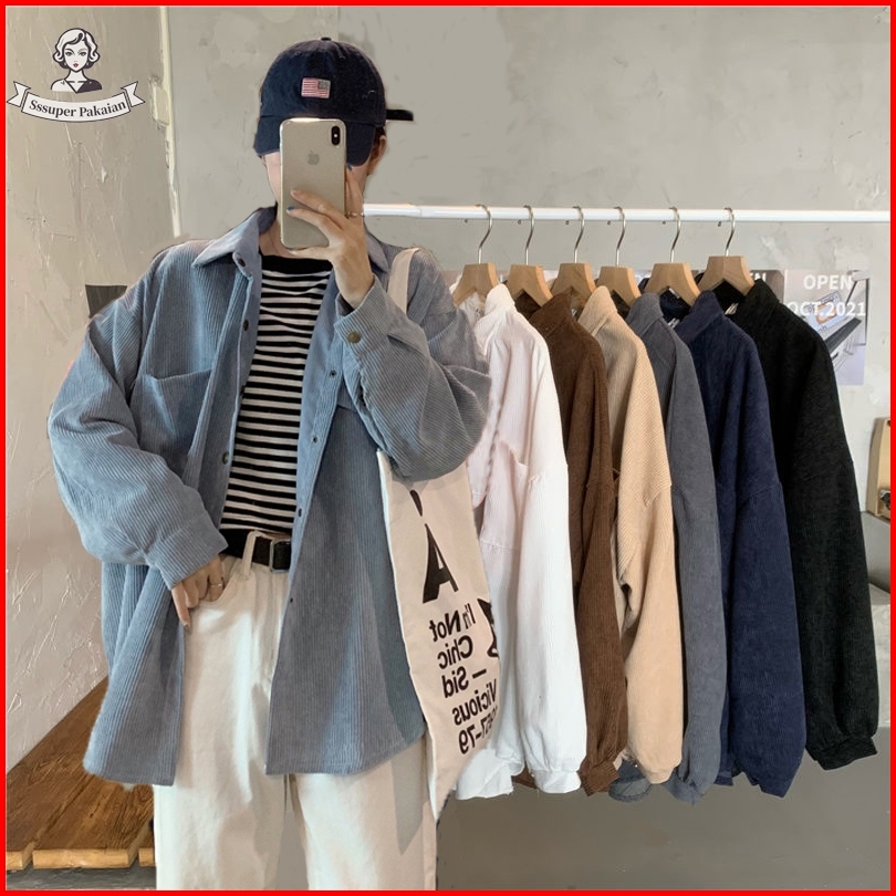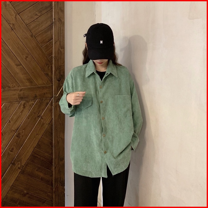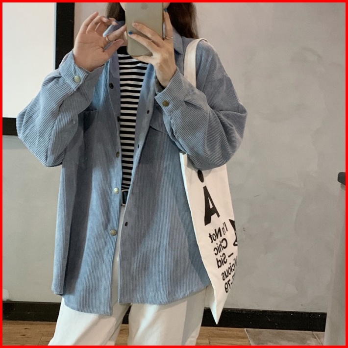M 4xl Kemeja Korduroi Retro Wanita Baru Atasan Kemeja Lengan Panjang Kasual Longgar