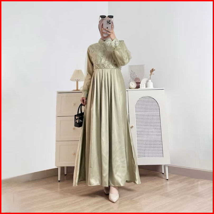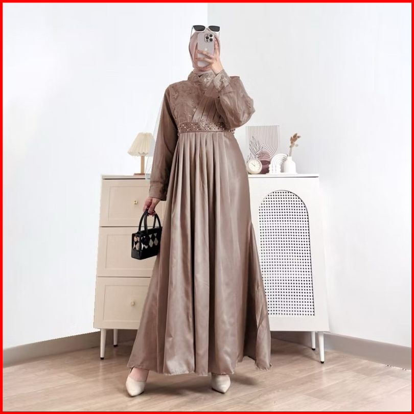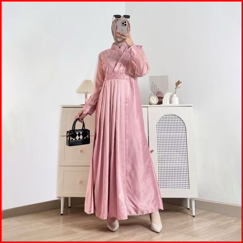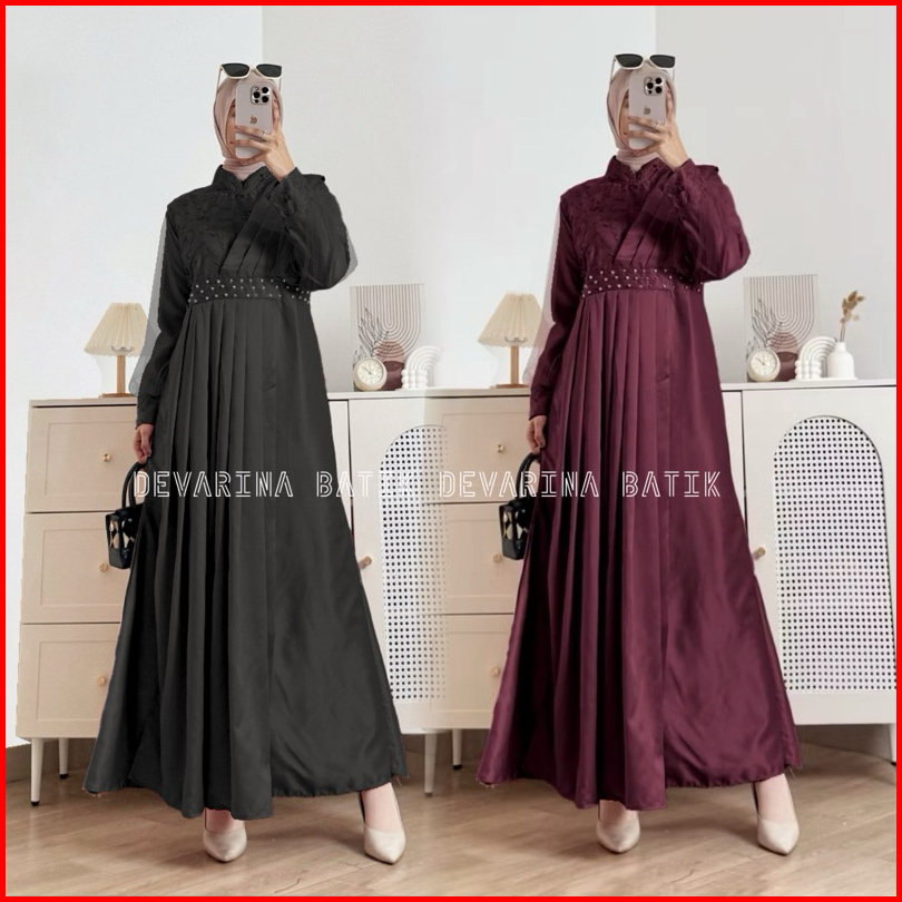 Devarina - Gamis Muslimah Syakila Model Brukat Tille Bordir Oufit Lebaran Kondangan Mewah Terbaru Dres Kondangan Gamis L