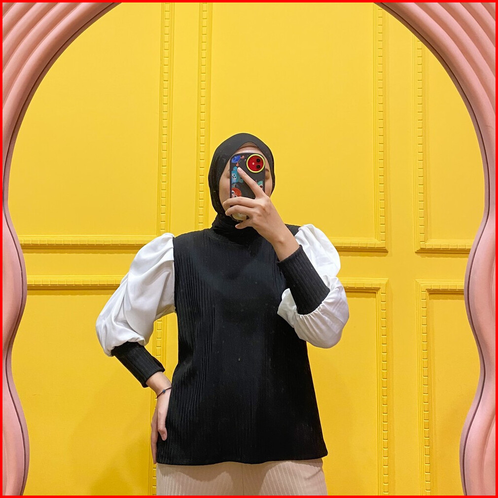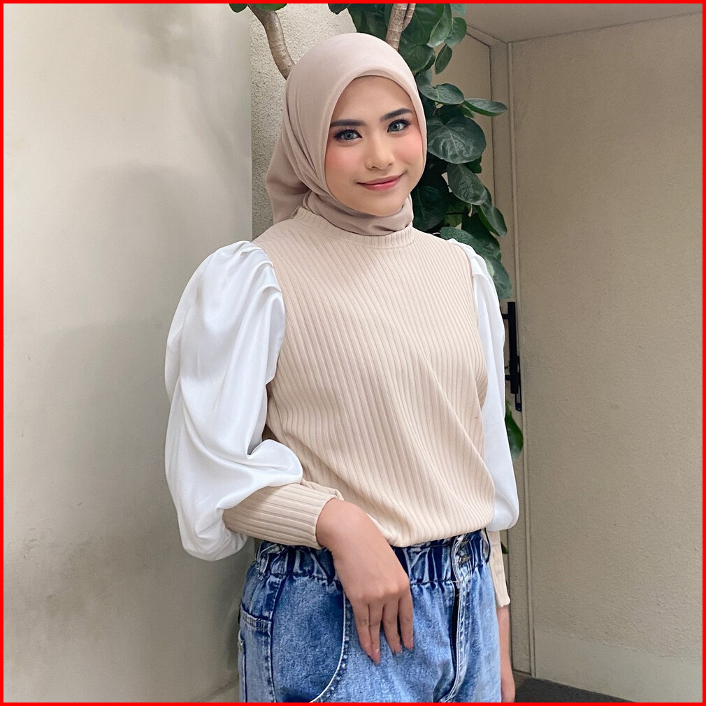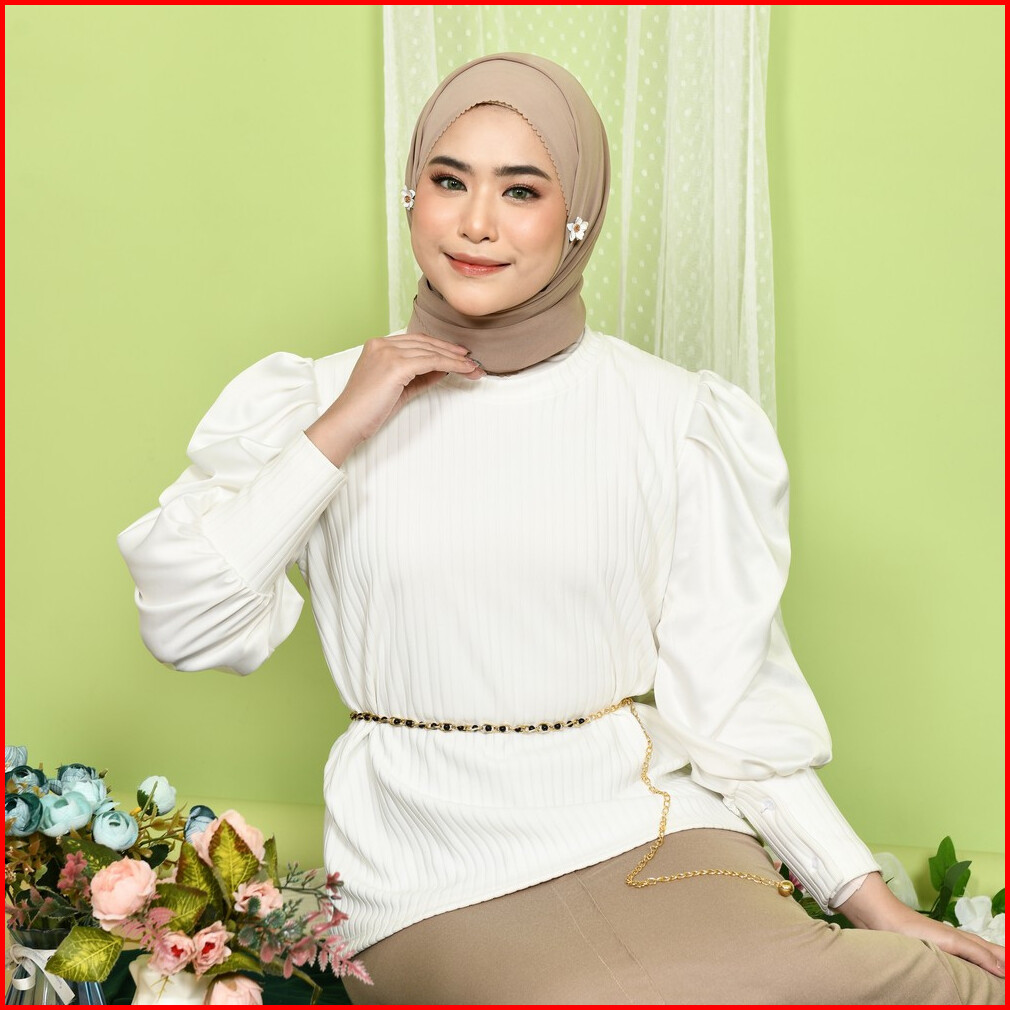 Kellen Puff Sleeve Top Mix Saten Blouse Wanita Korean Style Blouse Lengan Ballon