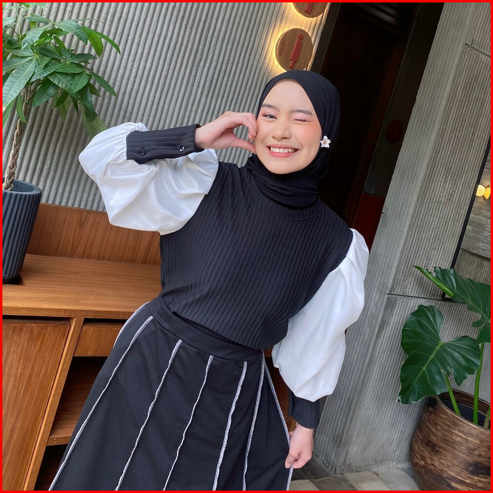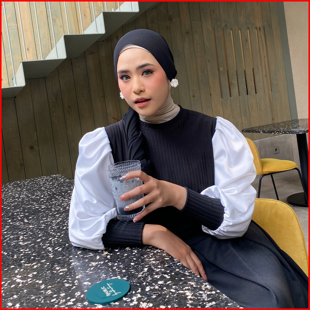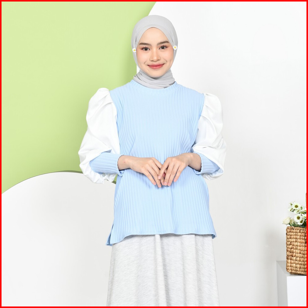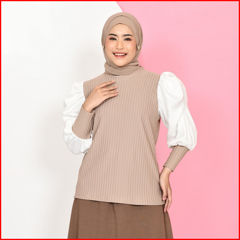 Kellen Puff Sleeve Top Mix Saten Blouse Wanita Korean Style Blouse Lengan Ballon
