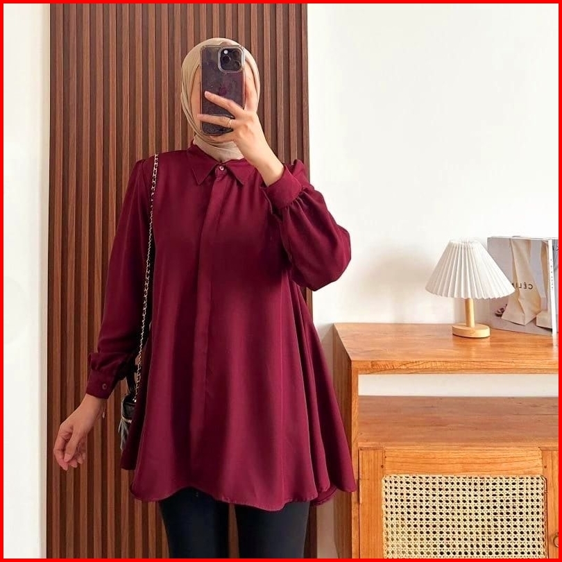 Blouse Wanita Terbaru Kinka Shirt Allsize By.nirby.id Terbaru Poly Linen Kekinian Terbaru
