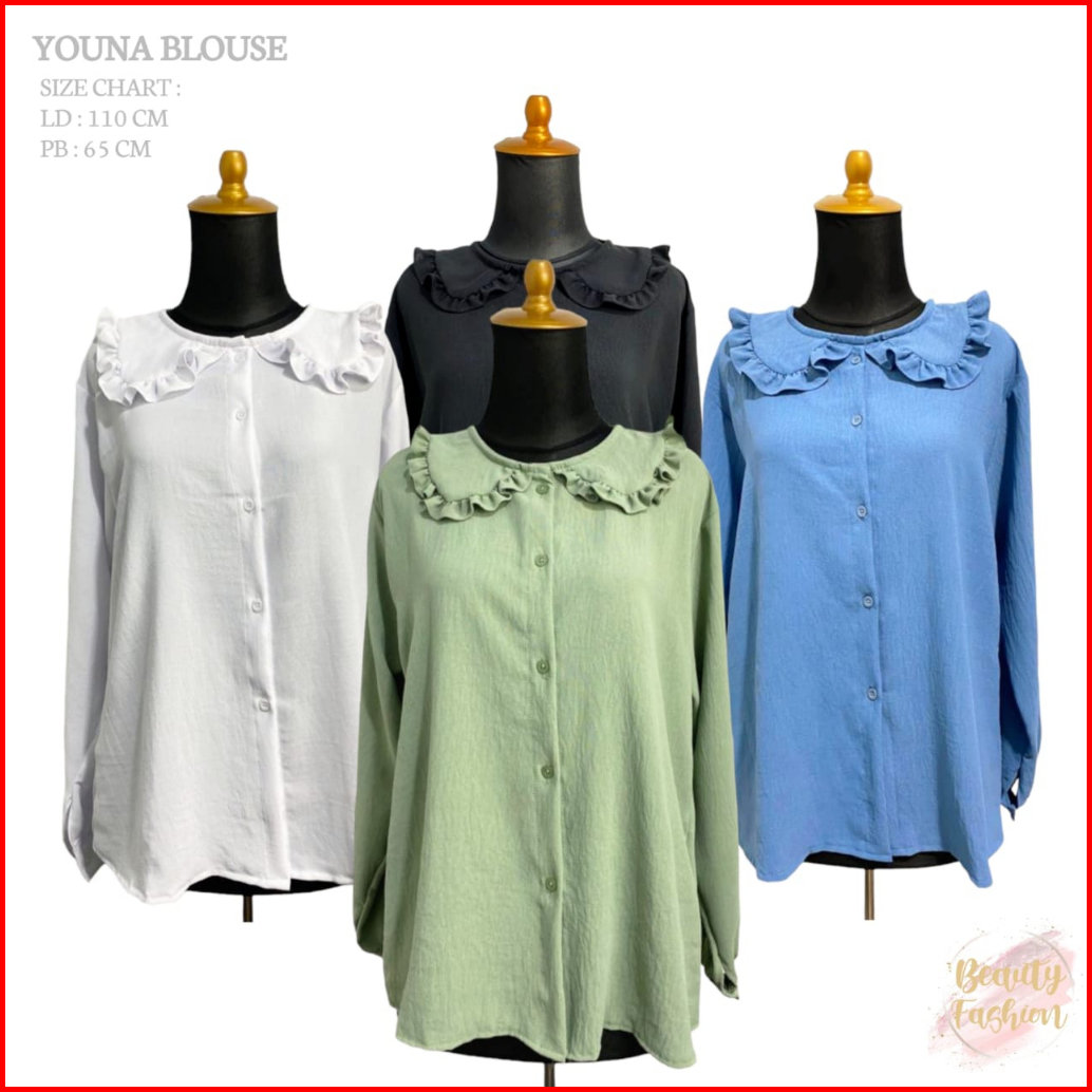 Beautyfashion-blouse Wanita Youna Atasan Terbaru Model Korean Style Bahan Crinkle Airflow Premium