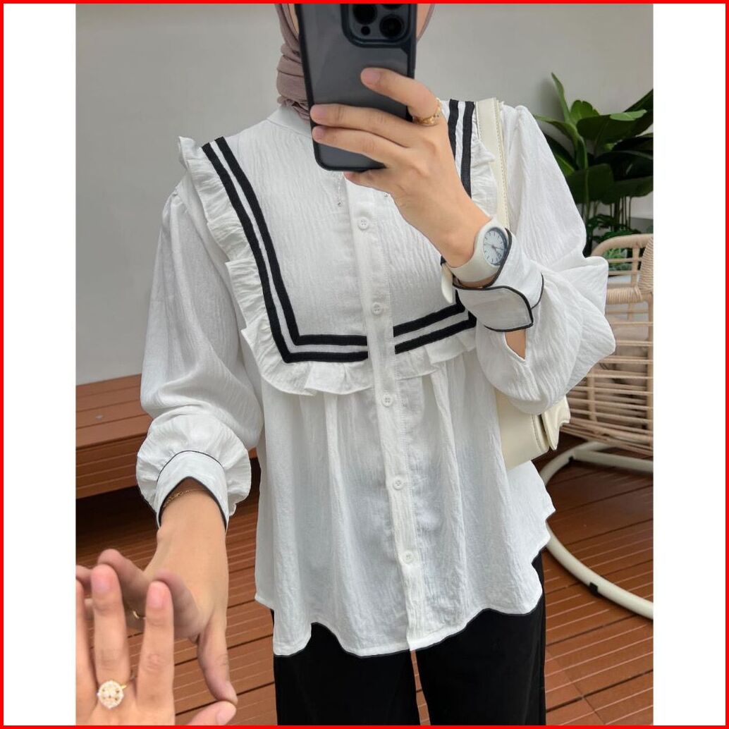 Rx Fashion - Blouse Nonny Ruffle Crincle Airflow Blouse Wanita - Pn