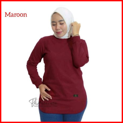 Kaos Polos Wanita Lengan Panjang Oval Baju Kaos Polosan Cewek Atasan Lengan Panjang