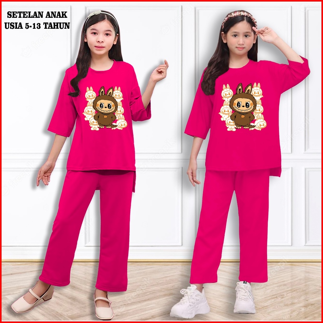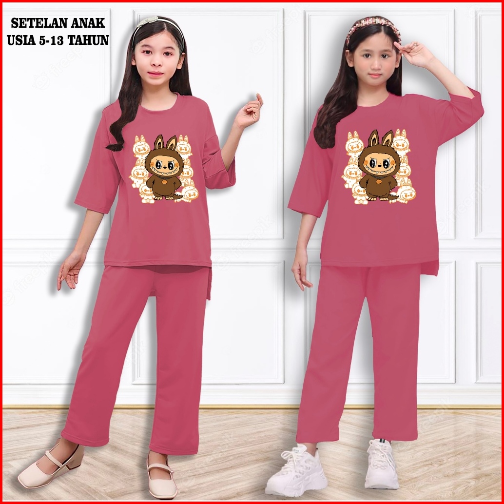 Setelan Anak Perempuan Labubu Toffe Usia 5-13 Tahun Setelan Anak Hoshi Kids
