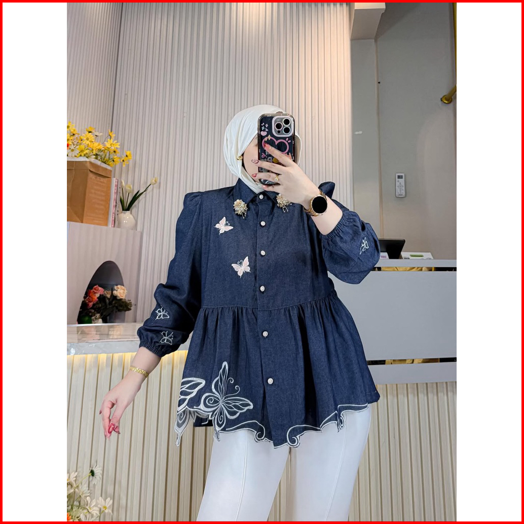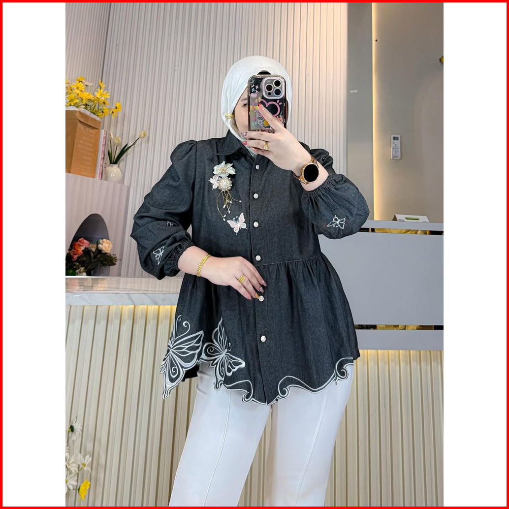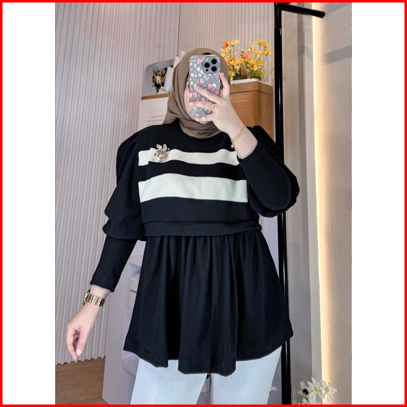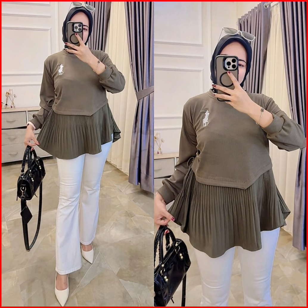 Blouse Knit Combi Crincle Premium Blouse Wanita Model Baru