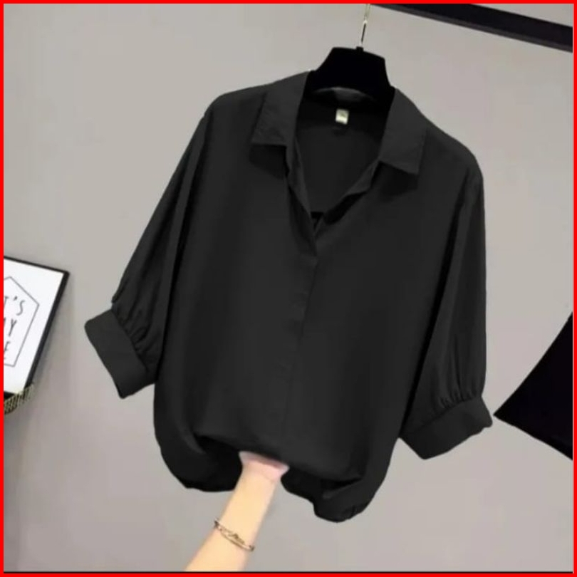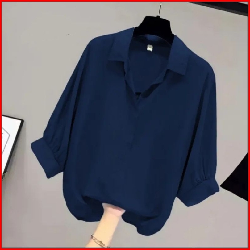 Blouse Wanita Lengan Ballon Atasan Wanita Leher V Kemeja Basic Korea Style Baju Cewek Kerja Korean Style Terbaru
