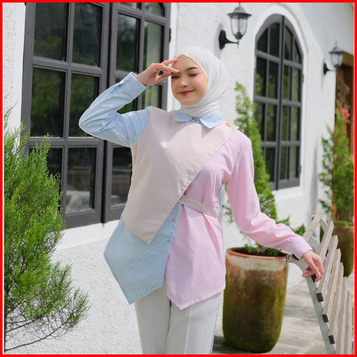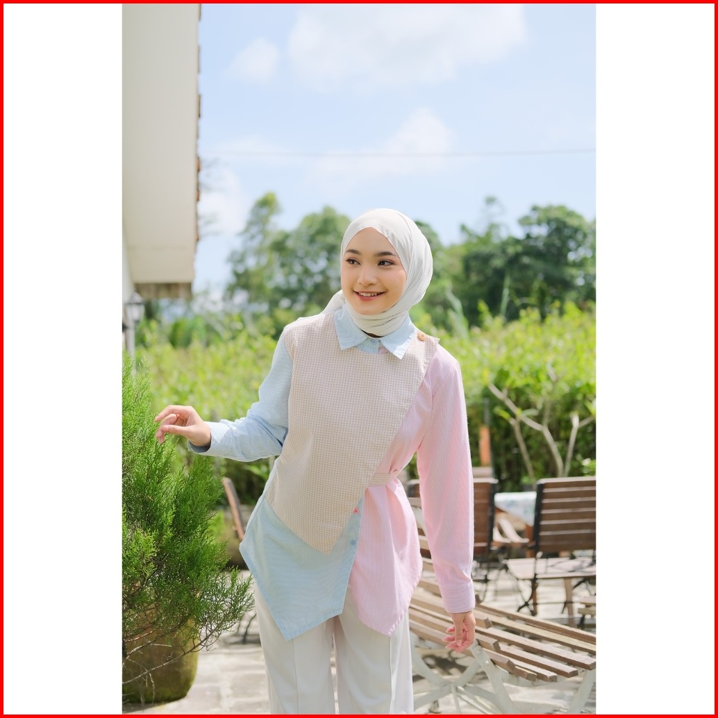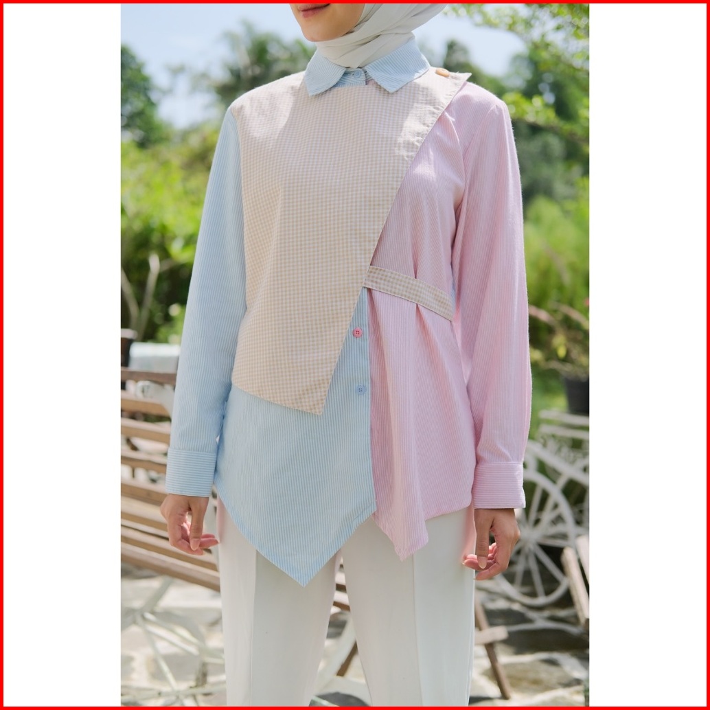 Tunique Keiji Blouse - Lini Series 5.0 Atasan Blouse Wanita Muslim Kekinian Unik Garis-garis