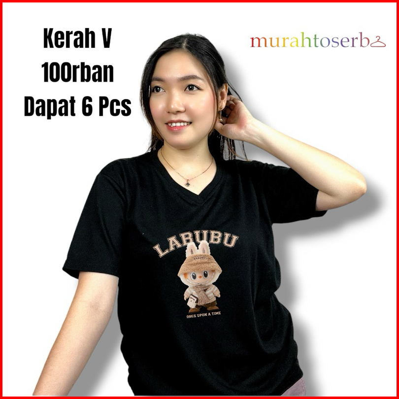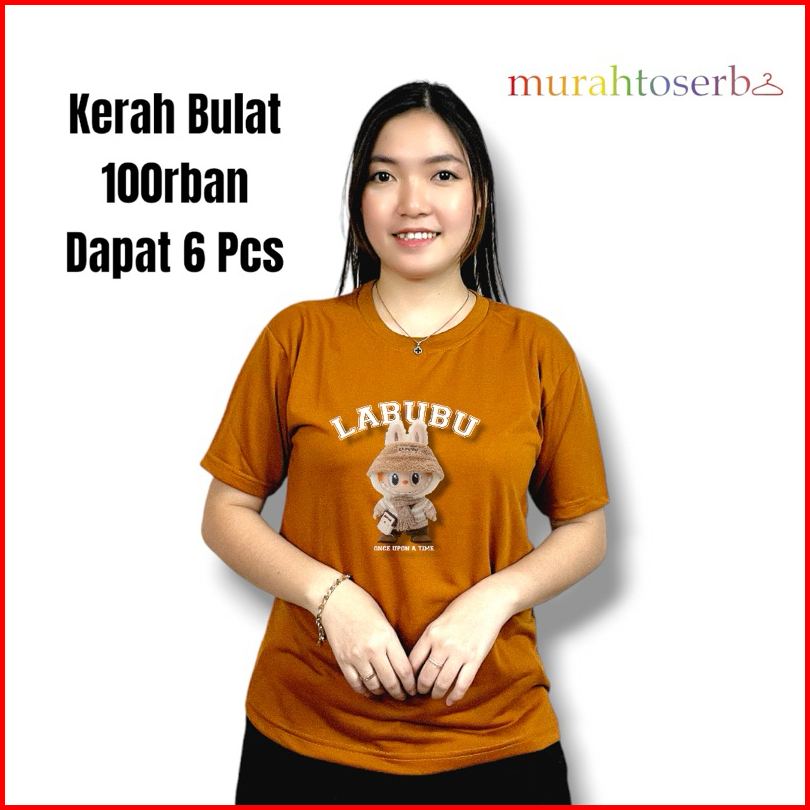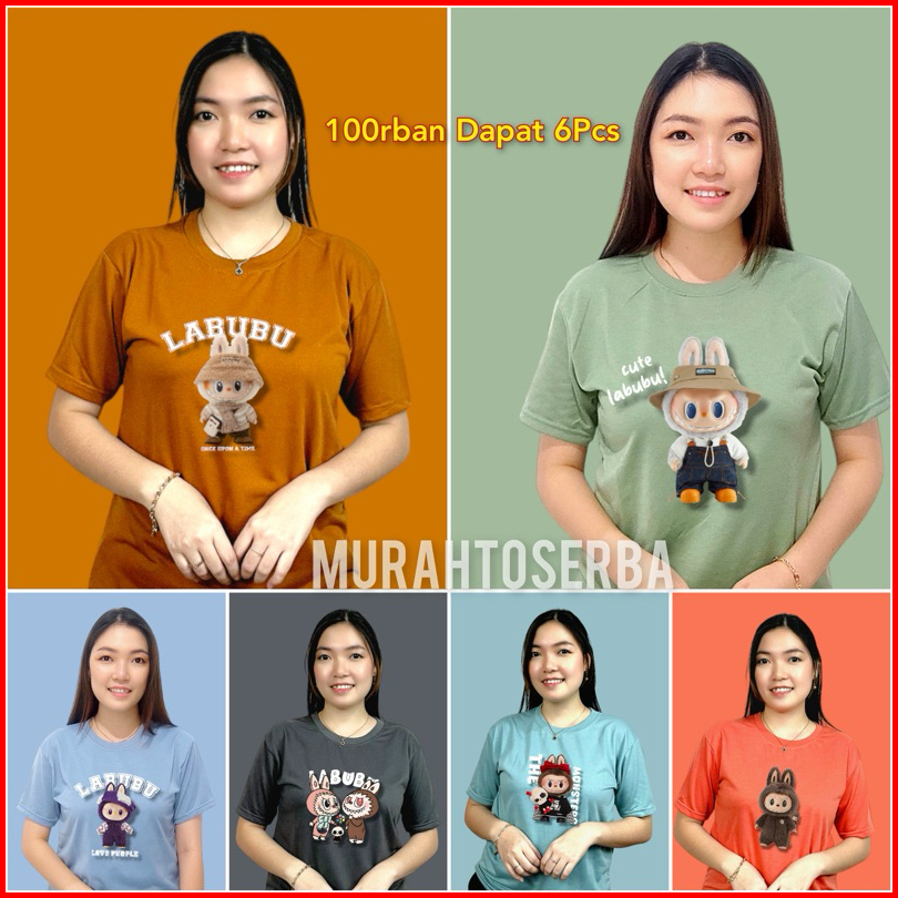 100rb Dapat 6 Pcs Kaos Wanita Motif Labubu Lengan Pendek Bahan Babyterry