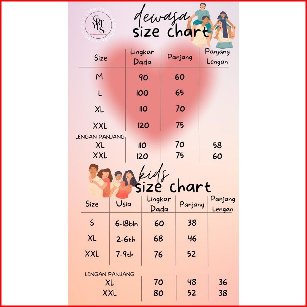 Carotyles Baju Atasan Kaos Couple Keluarga Family Wanita Anak Perempuan Laki Laki Pasangan Oversize Jumbo Lengan Pendek