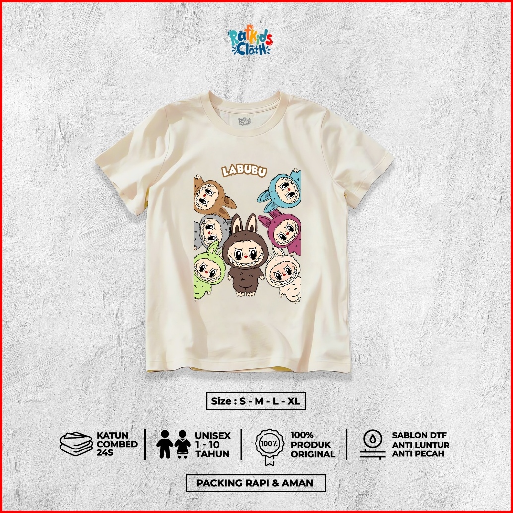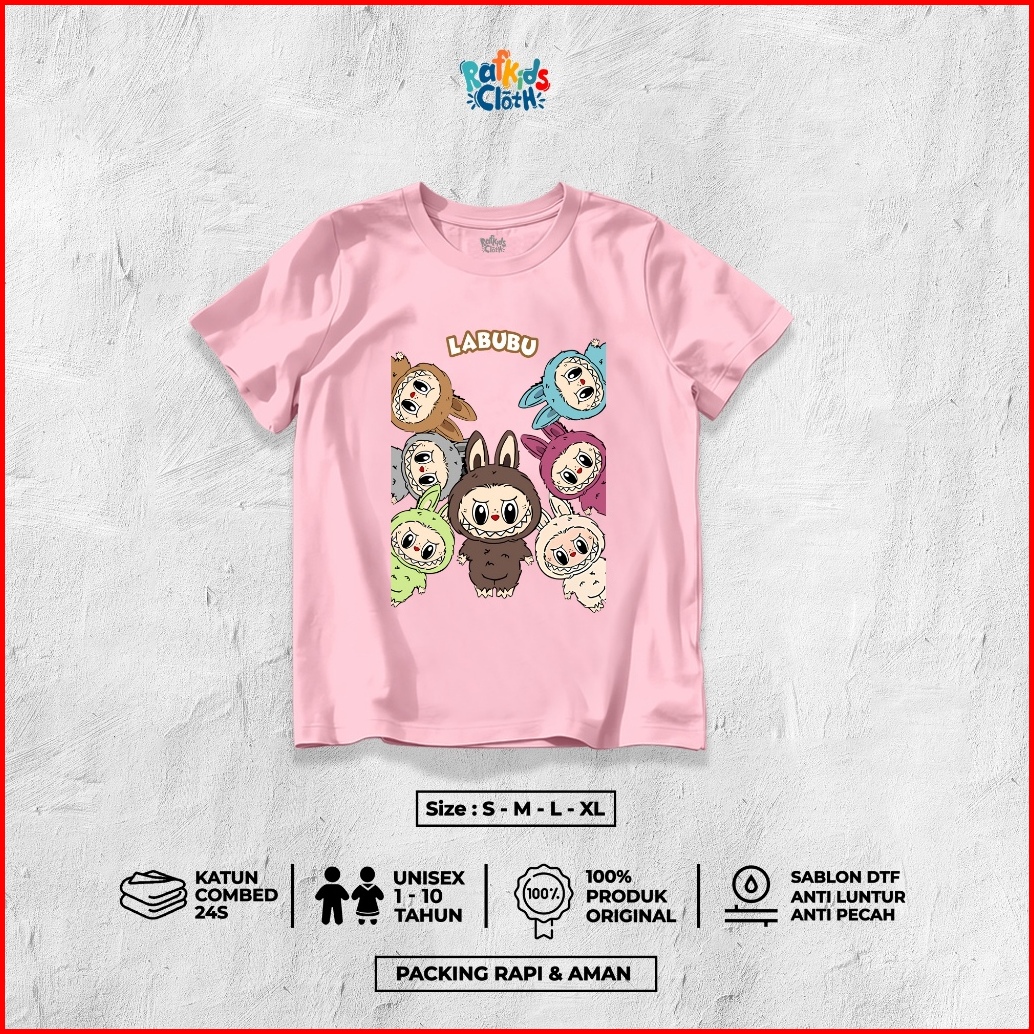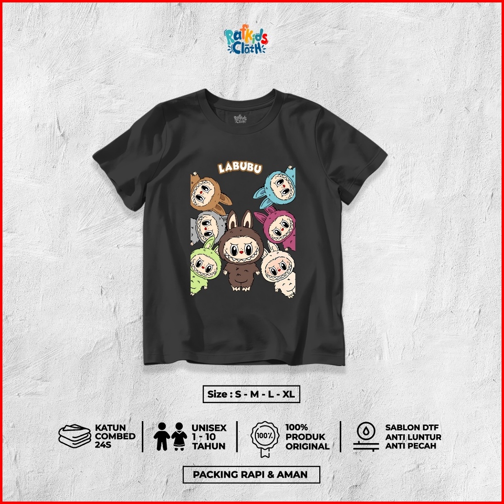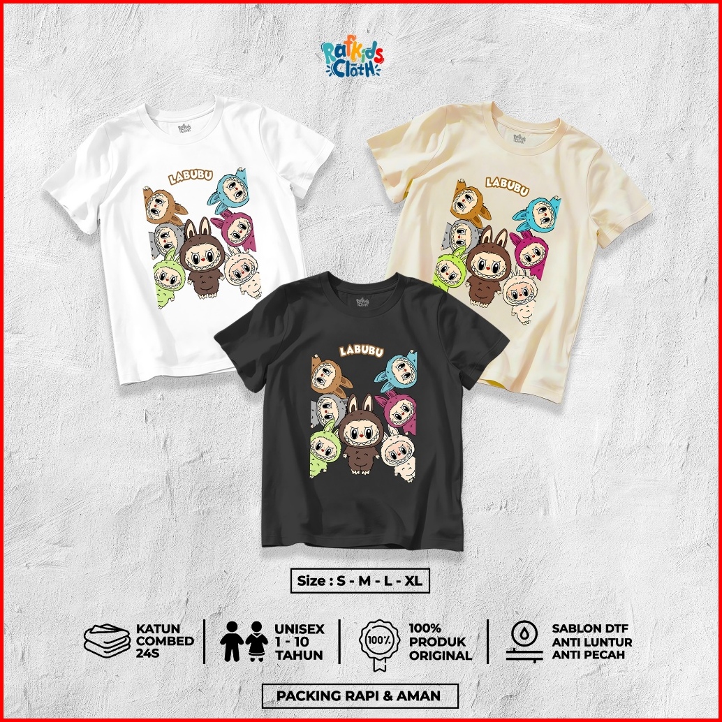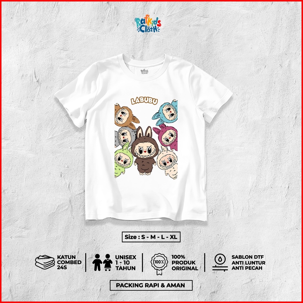 Kaos Anak Laki Laki Perempuan Labubu Baju Usia 1-10 Tahun Motif Kartun Monster Lucu Combed 24s Viral