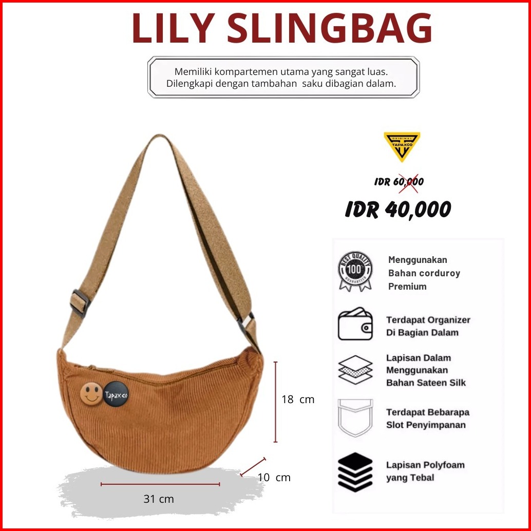 Tas Selempang Corduroy Lily Tas Slingbag Wanita Kobeo I Free 2 Bross Dan Bag Charm