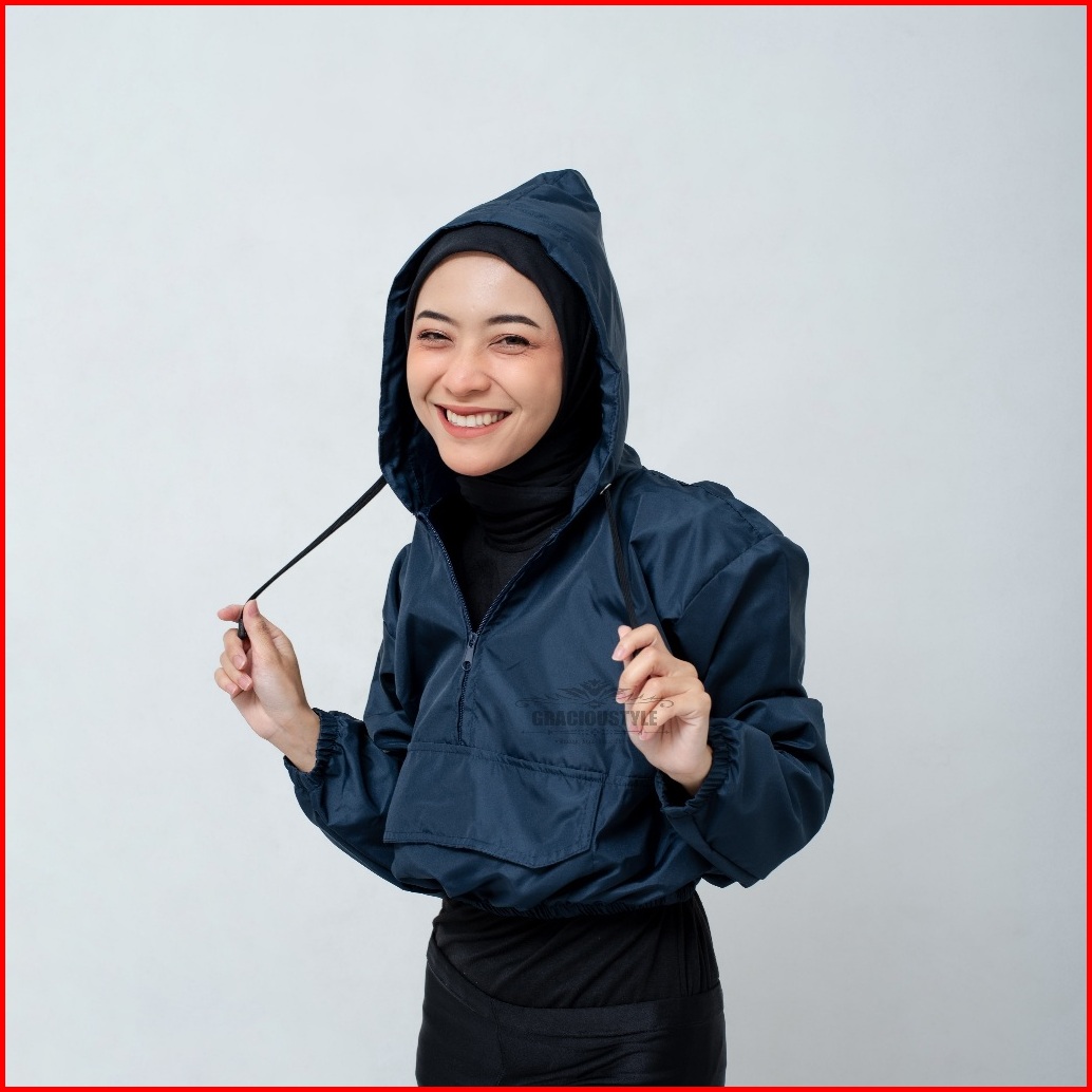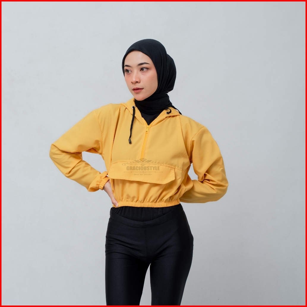 Gracioustyle - Jaket Olahraga Wanita Model Crop Top Ringan Untuk Aktifitas Olahraga Bahan Despo