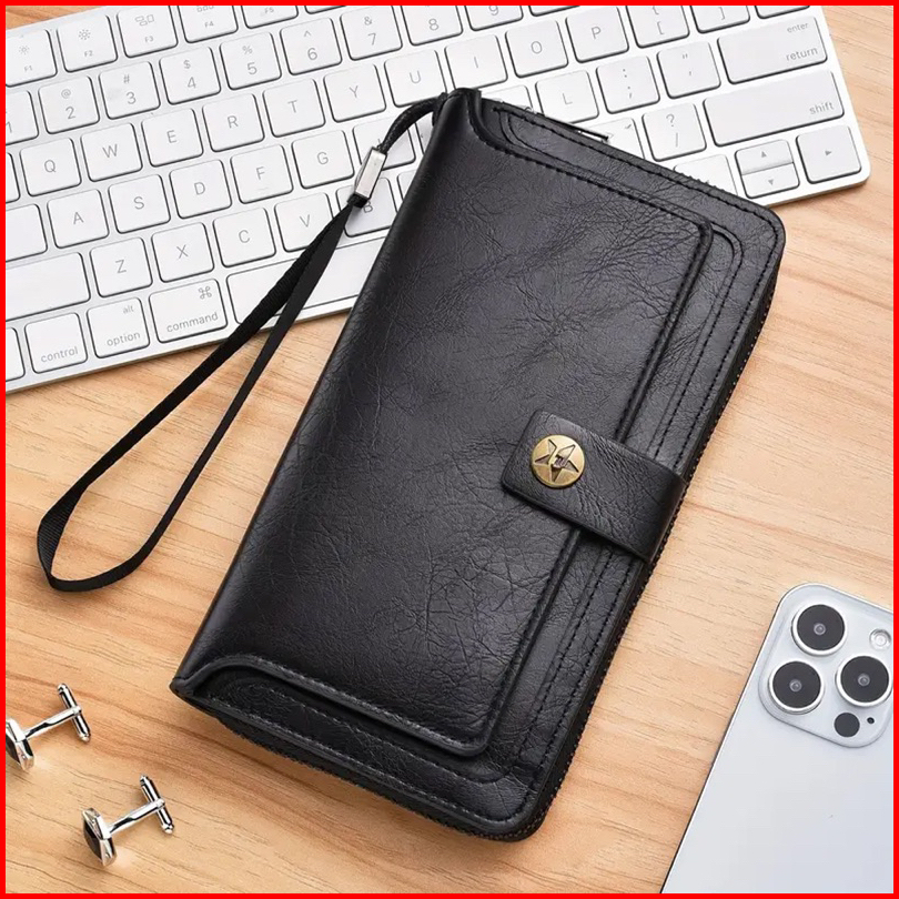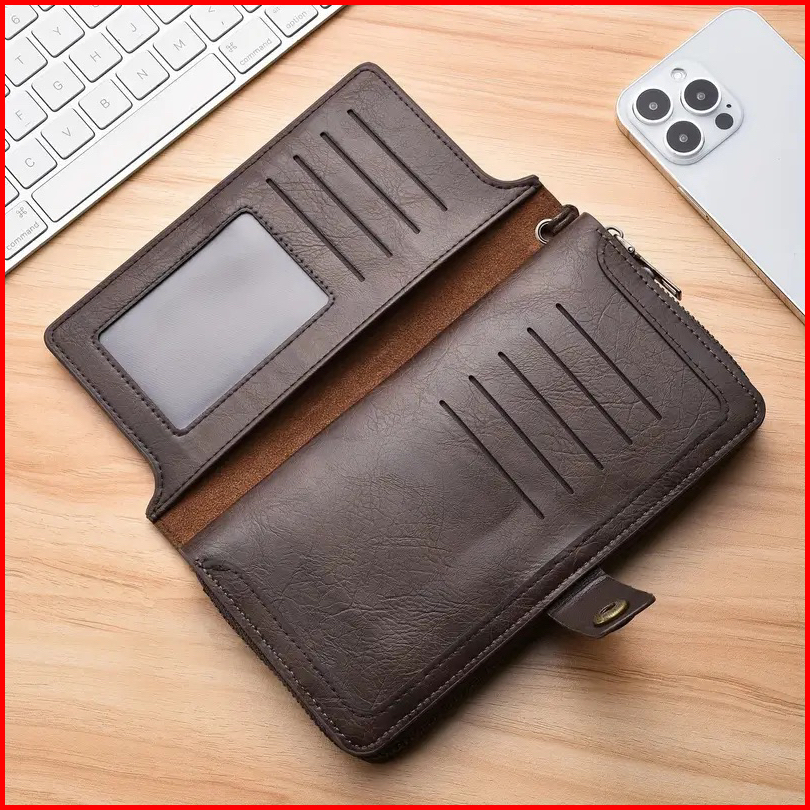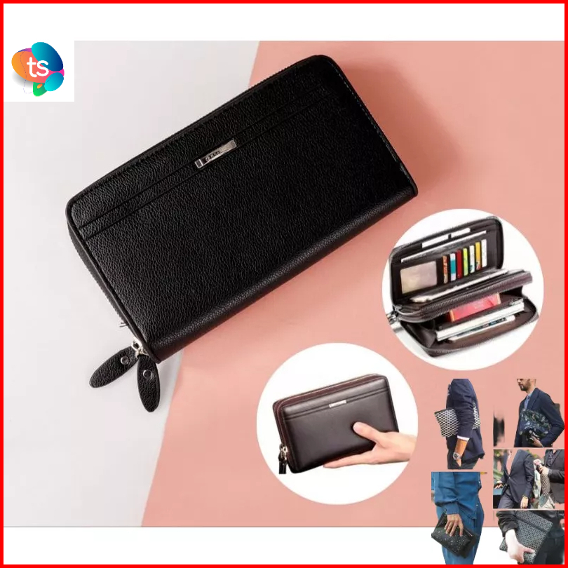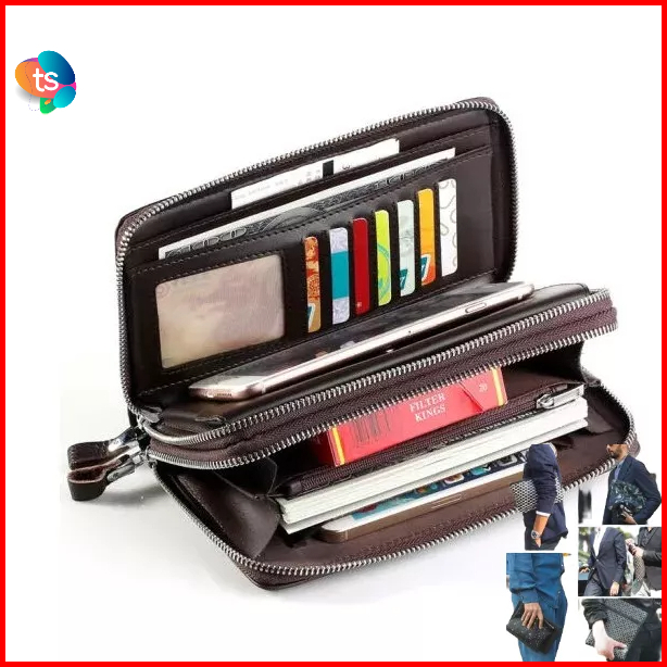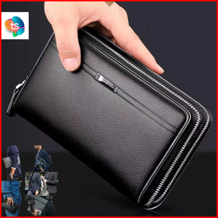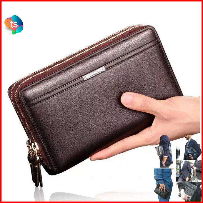 Dompet Wanita Import Clutch Dual Zipper Panjang Kulit Pu Wanita Pria
