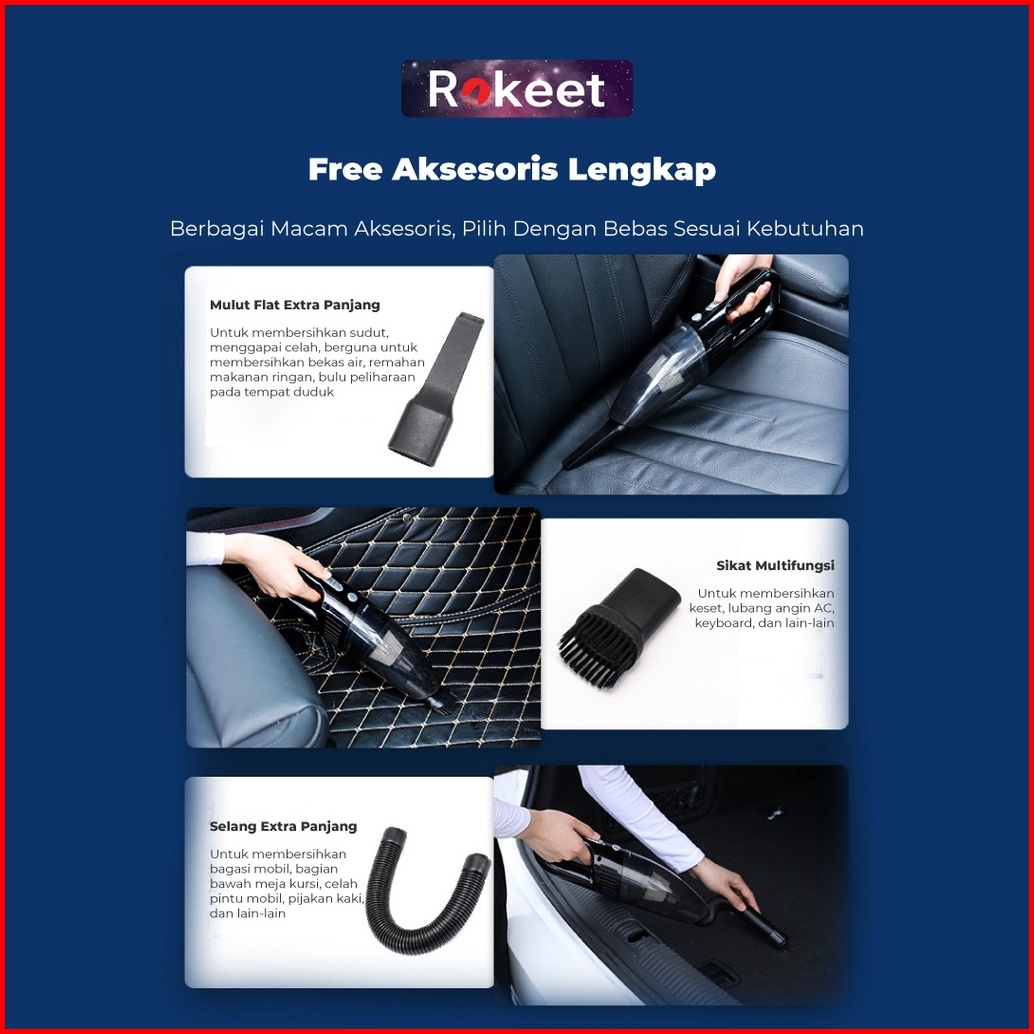 Rokeet Wireless Vacuum Cleaner Penyedot Debu Kuat 7000pa Portable Mini Penghisap Debu Tanpa Kabel Rechargeable