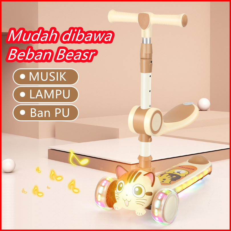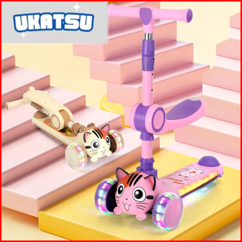 Ukatsu Skuter Anak 3 Roda 3 In 1 Dengan Lampu Dan Musik Skuter Aman Untuk Anak-anak Mainan Untuk Hadiah Anak