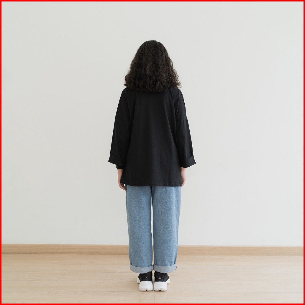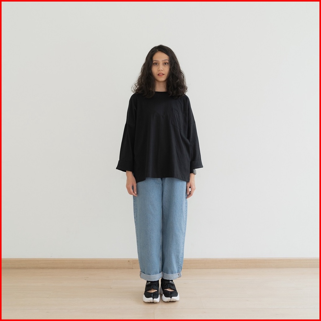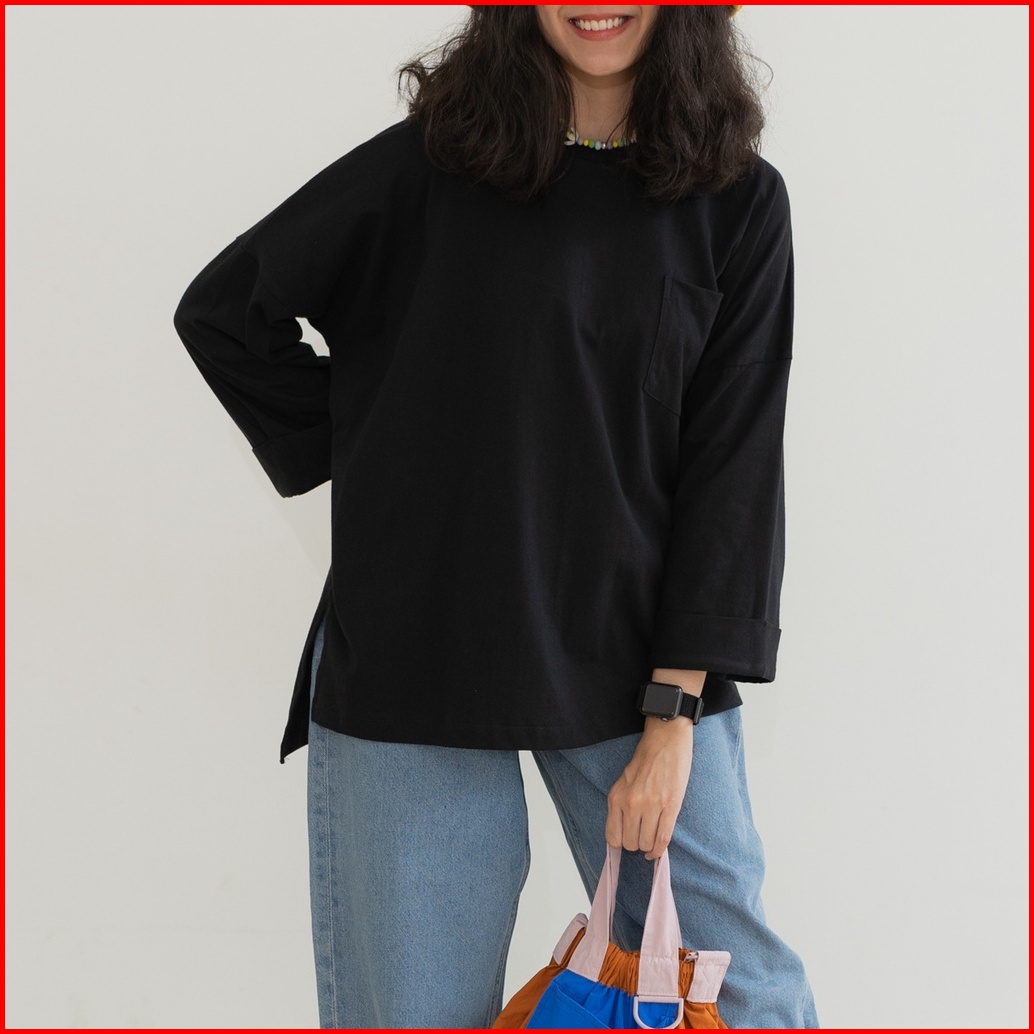 Anssy - Rumi Oversize Pocket Tshirt Black - Kaos Lengan Panjang Wanita