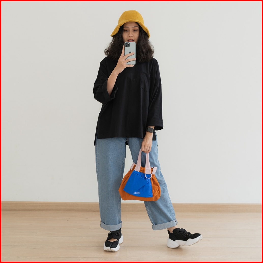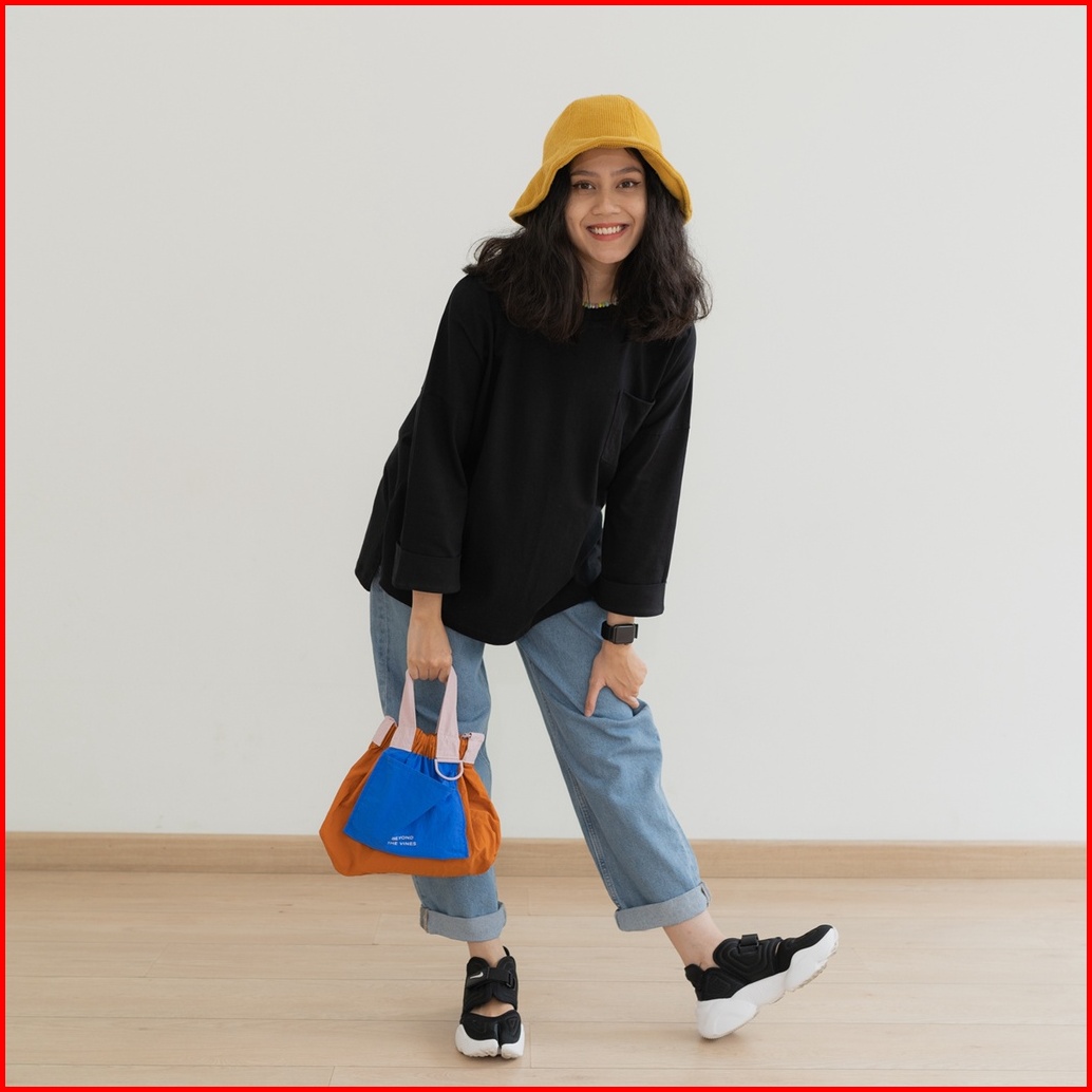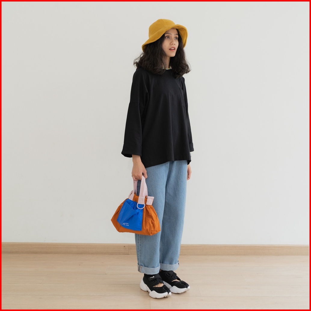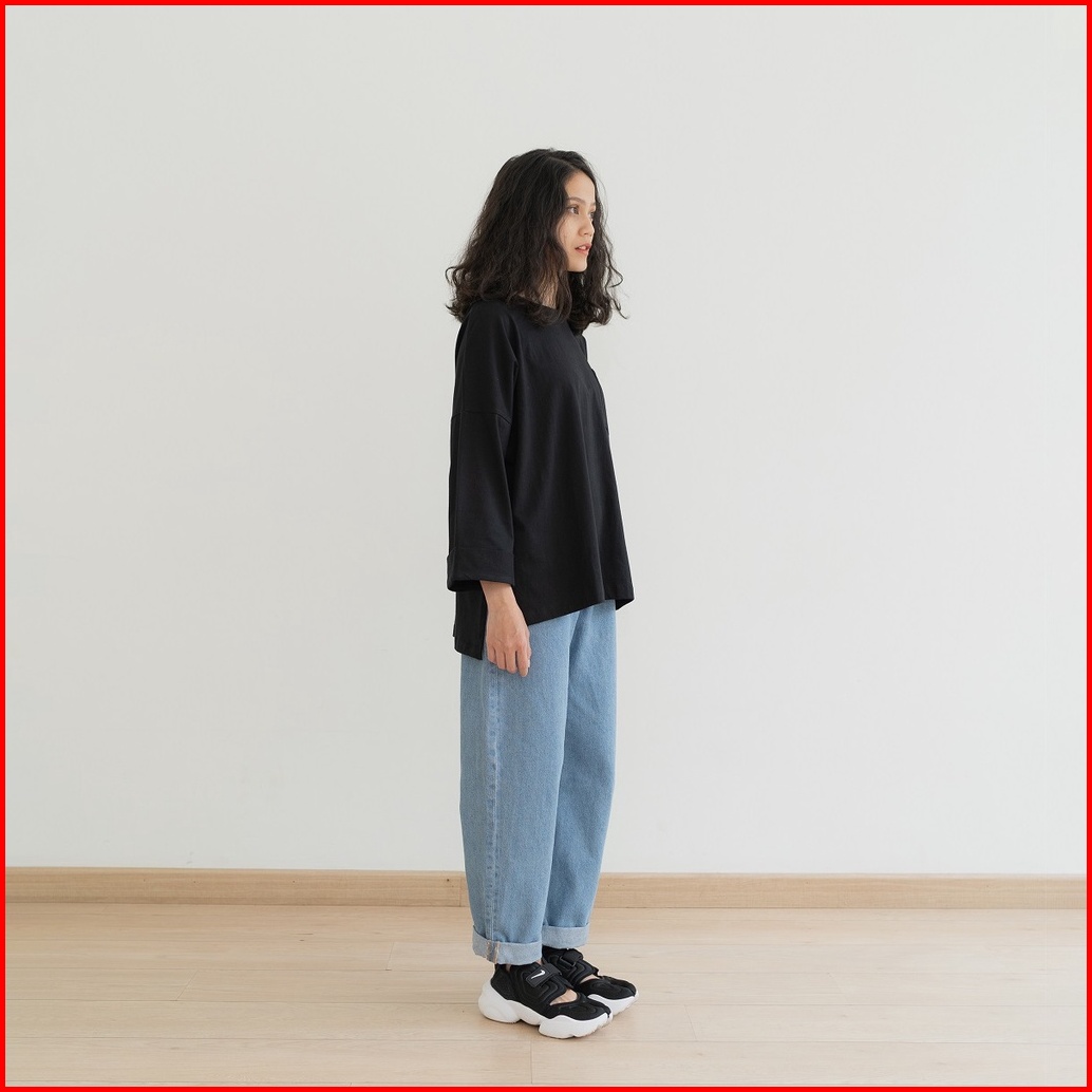 Anssy - Rumi Oversize Pocket Tshirt Black - Kaos Lengan Panjang Wanita