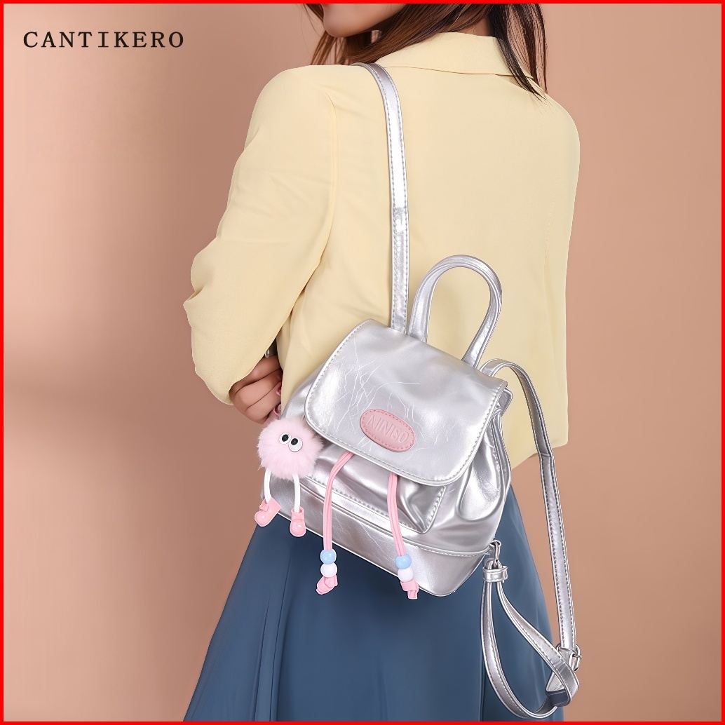 Cantikero Tas Ransel Wanita Kulit Mini Korea Fashion Import Tas Backpack Lucu Liontin Gratis