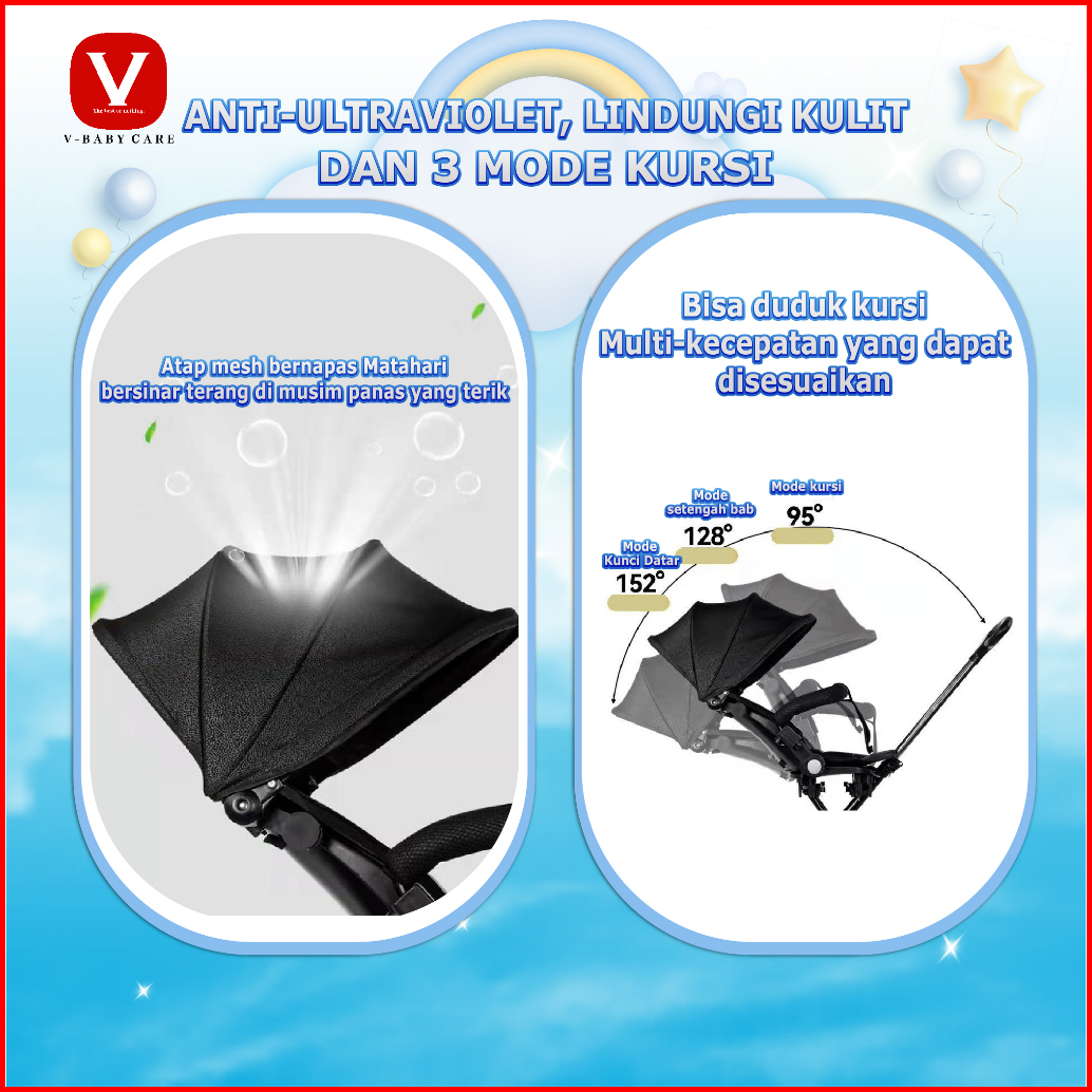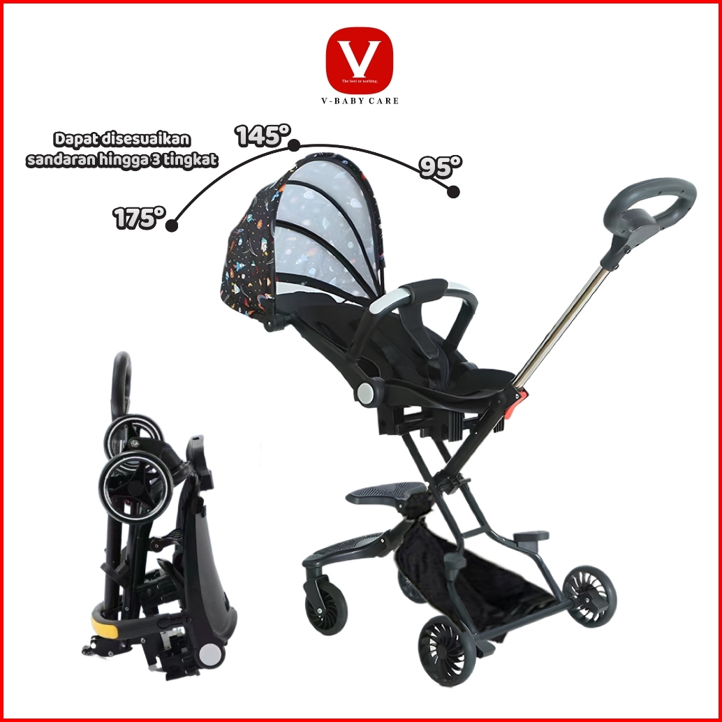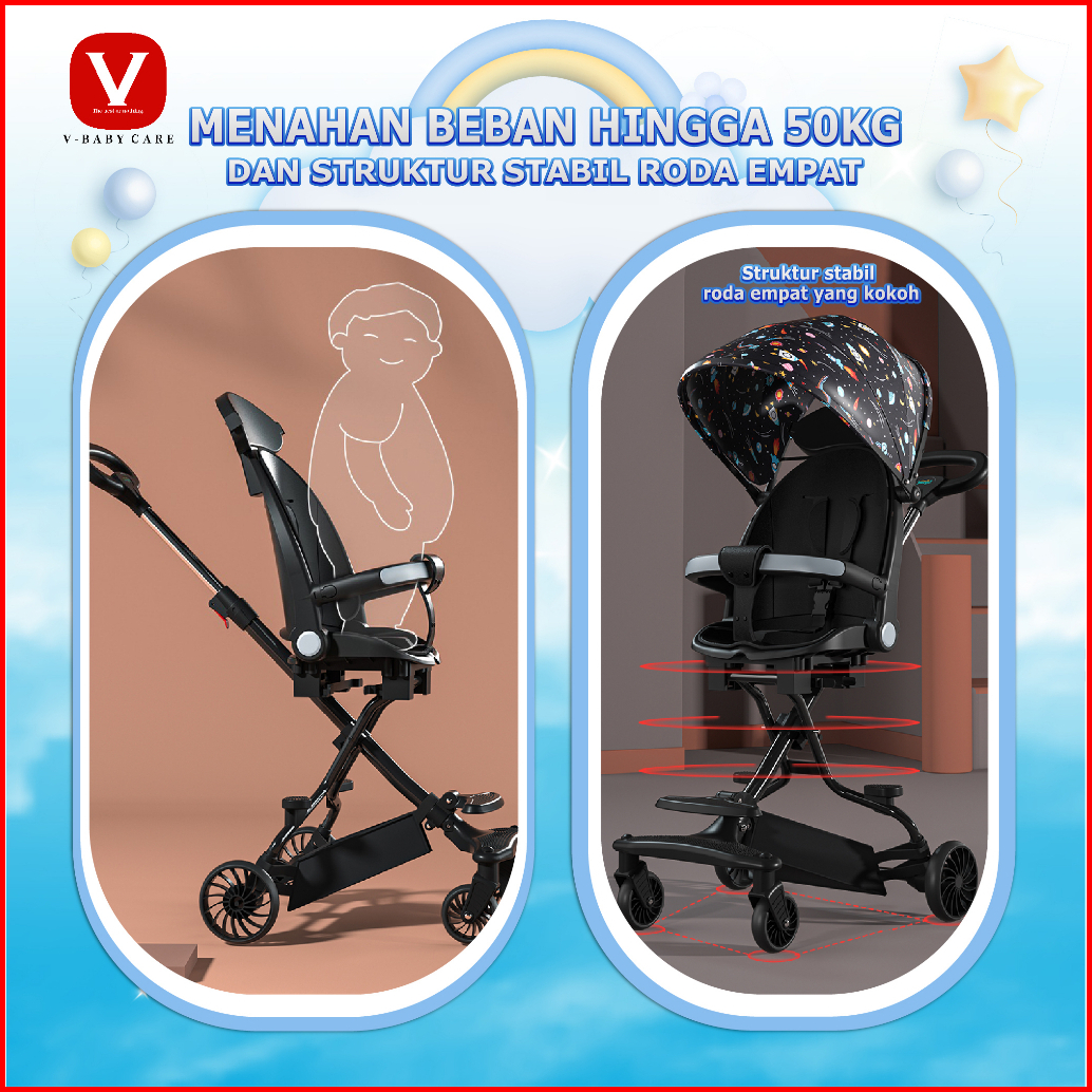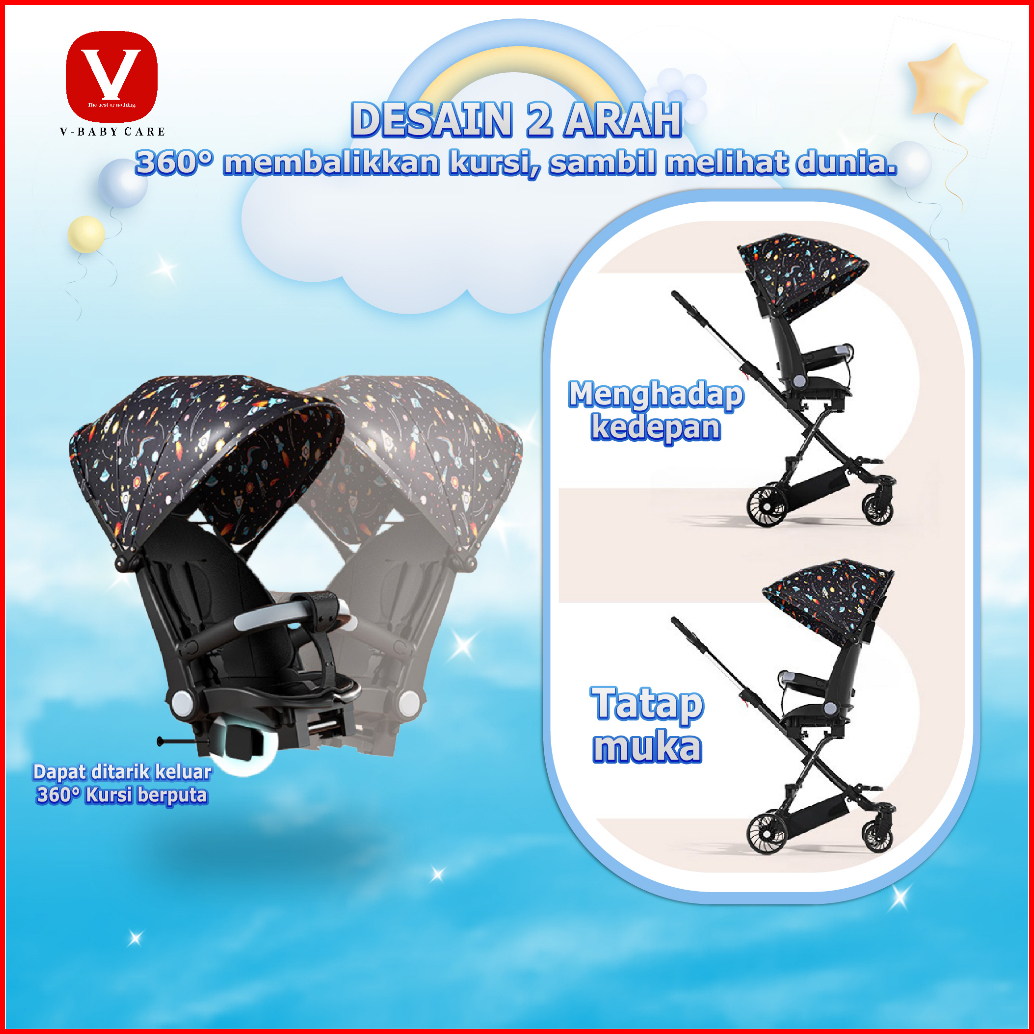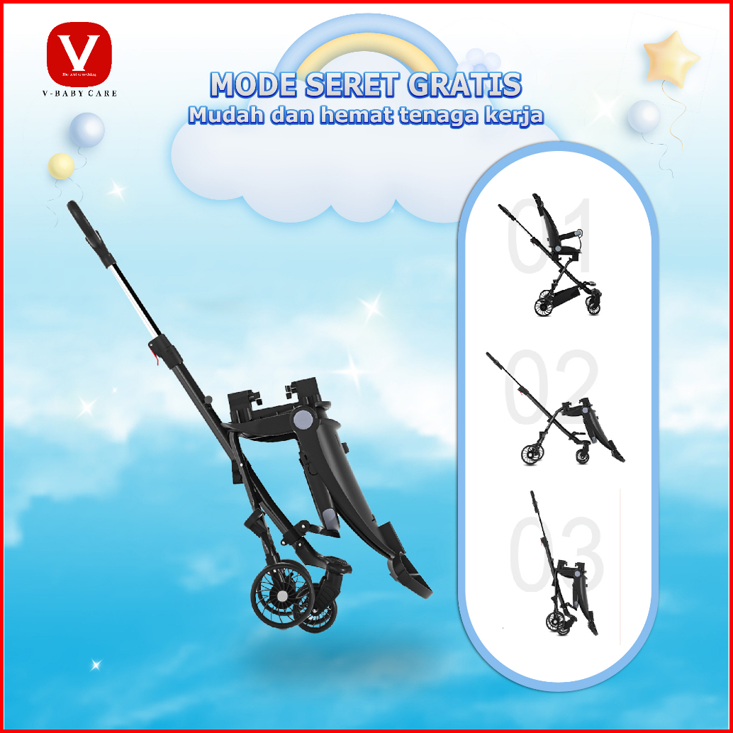 Vbaby Care Kereta Dorong Bayi Kursi Dorong Multifungsi Berbaring Dua Arah Dilipat Vbaby-320