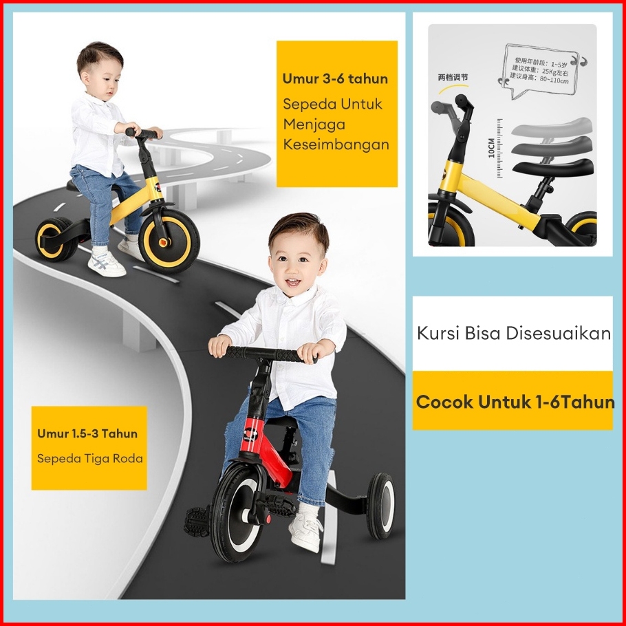 Sepeda Anak Roda 3 2in1 Sepeda Keseimbangan Anak Balance Bike Ride On Anak Push Bike