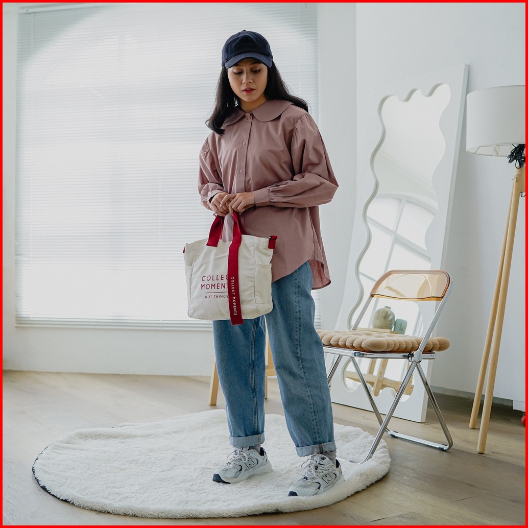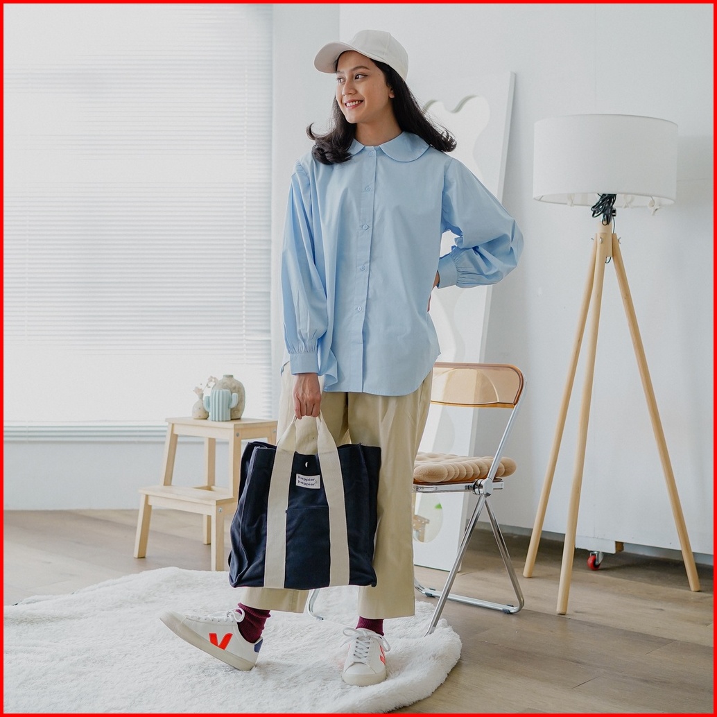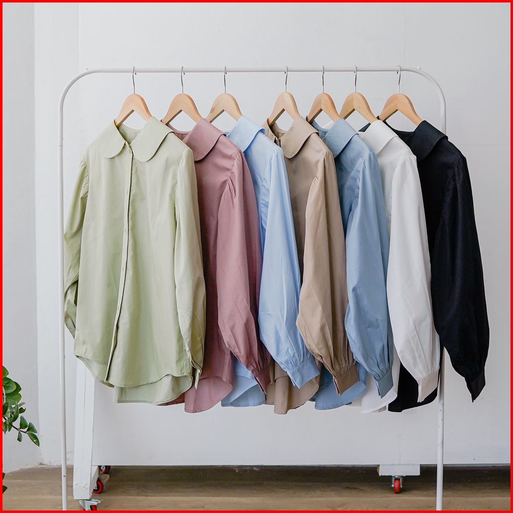 Anssy - Mina Oversized Round Collar Shirt - Kemeja Kerah Bulat Korea Wanita