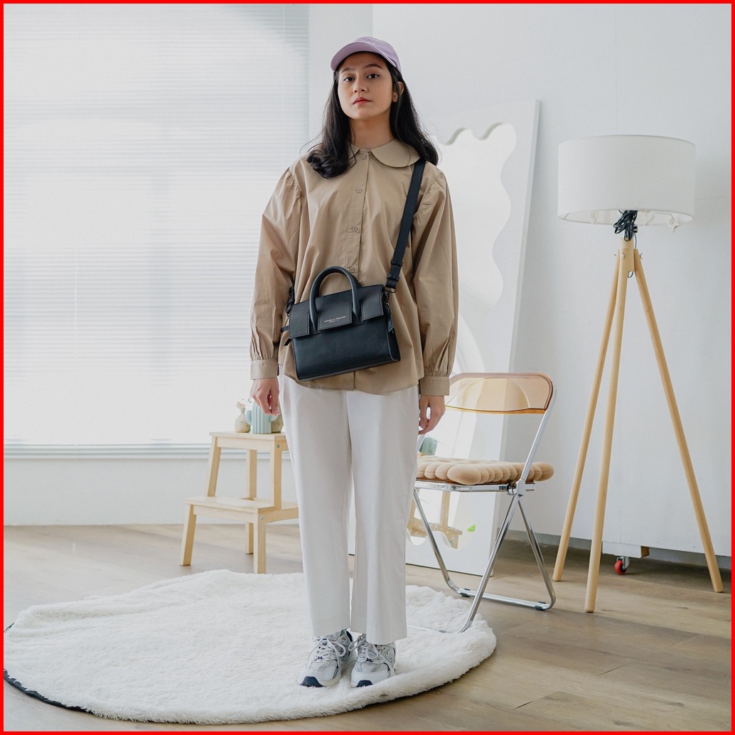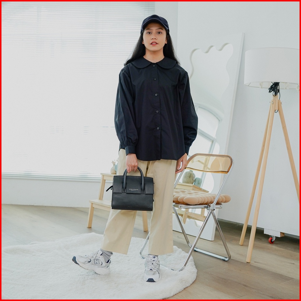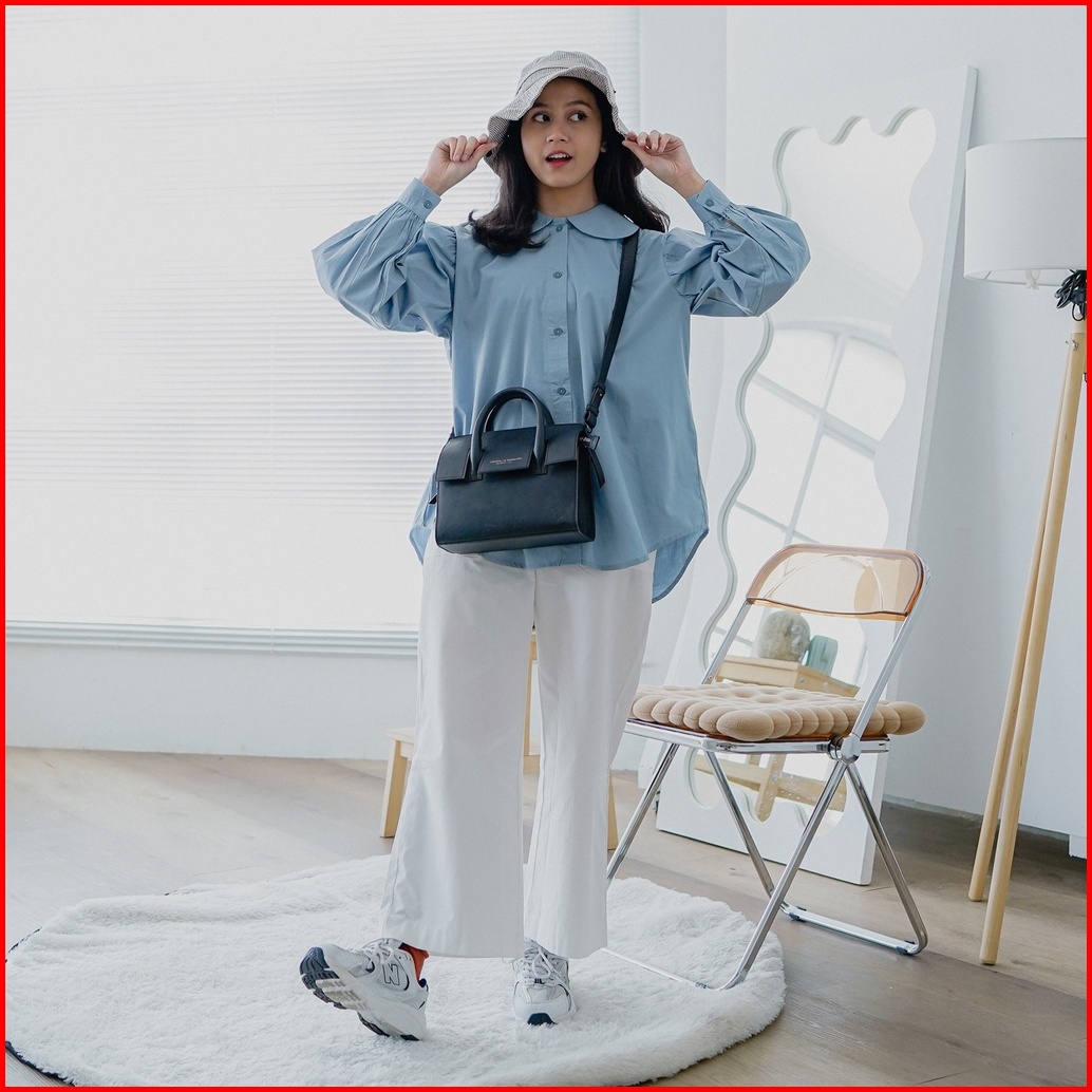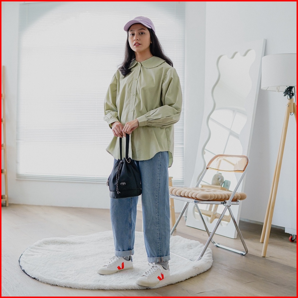 Anssy - Mina Oversized Round Collar Shirt - Kemeja Kerah Bulat Korea Wanita