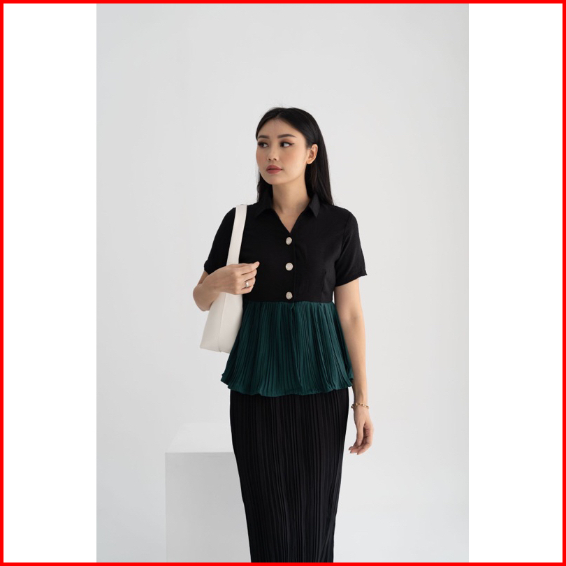 Iweargracie - Alisa Pleats Top Short Sleeve Atasan Wanita Kemeja Wanita Blouse Wanita