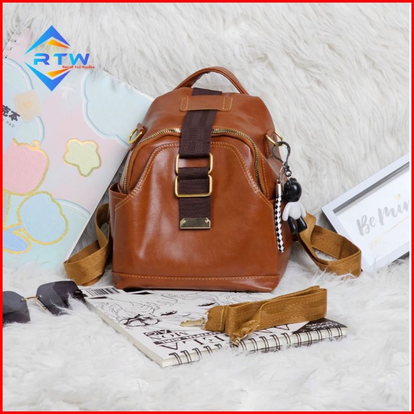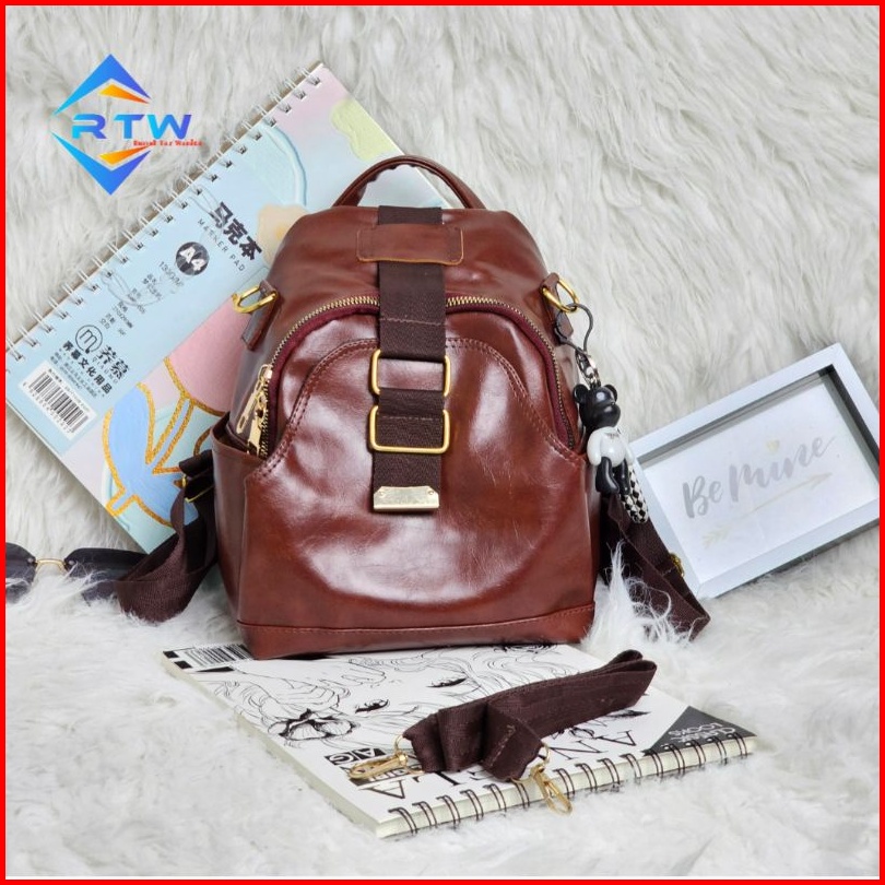Tas Ransel Wanita Gadis Remaja Multifungsi Tas Mini Kulit Pu Lembut
