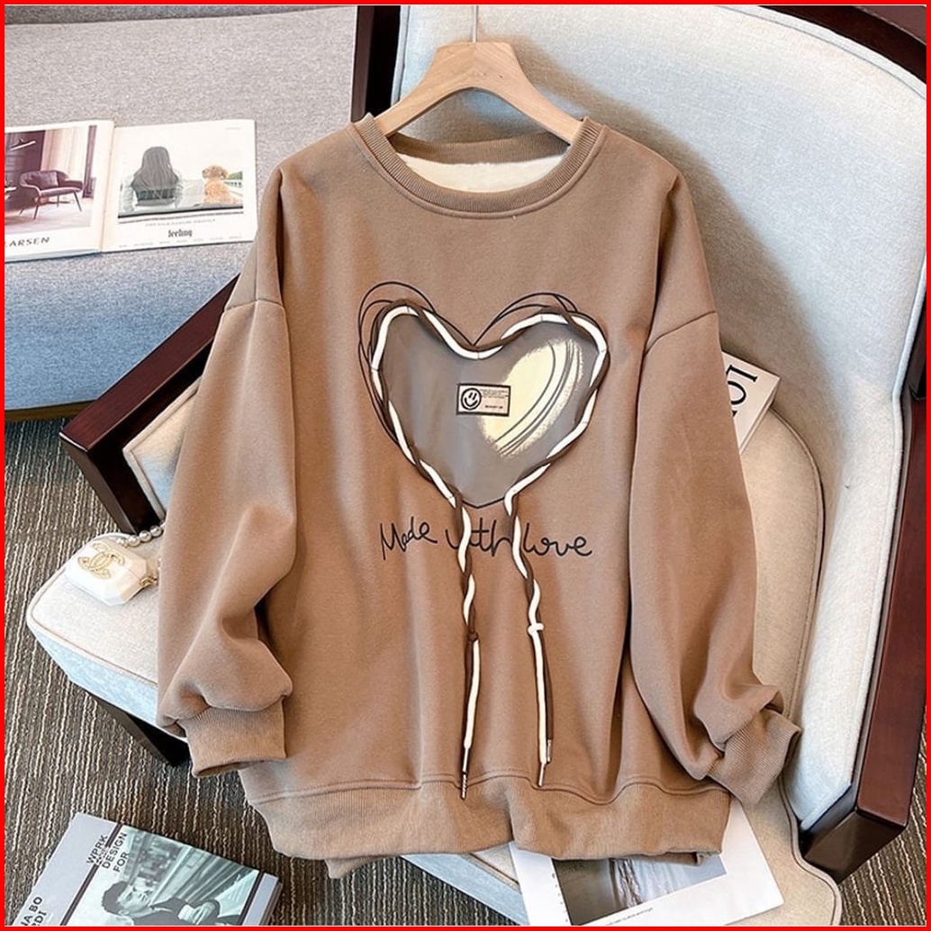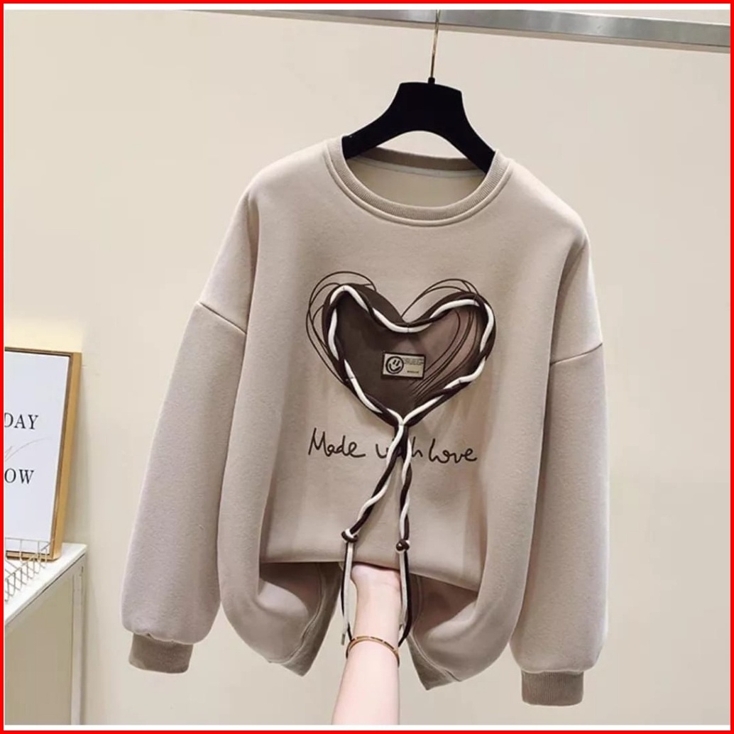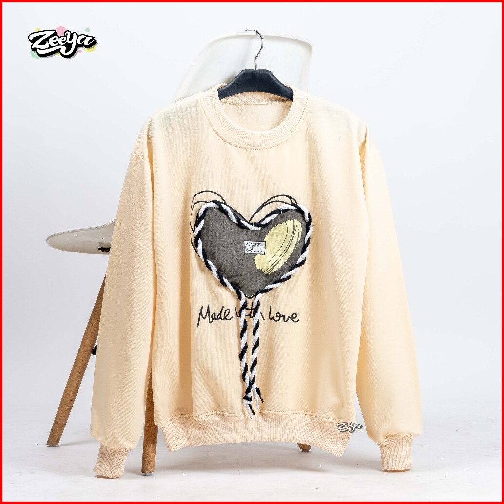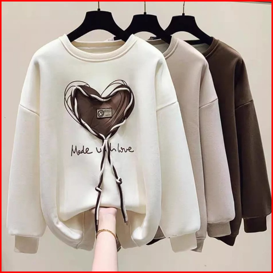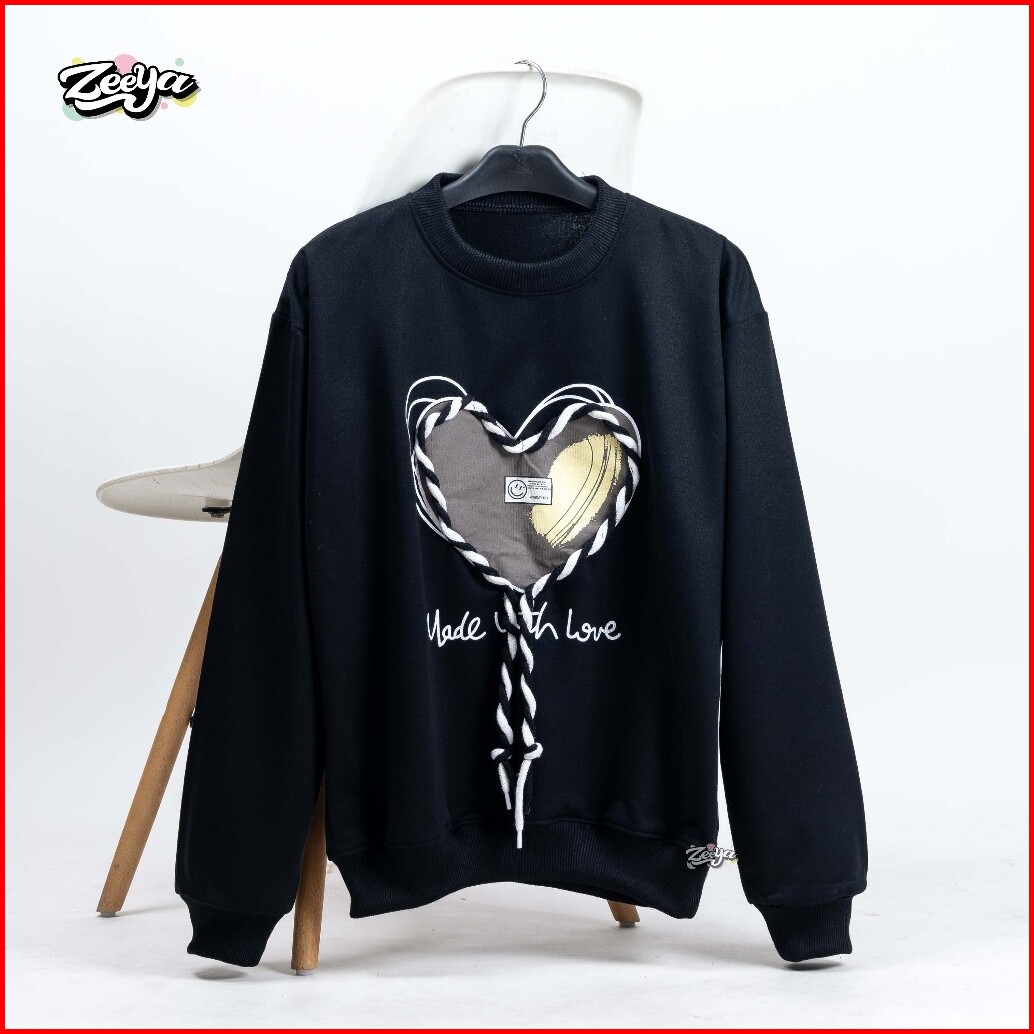 Sweater Wanita Made With Love Crewneck Wanita - Sweatshirt Remaja Kekinian