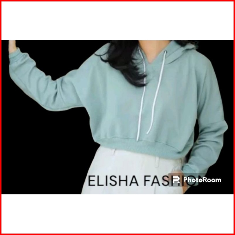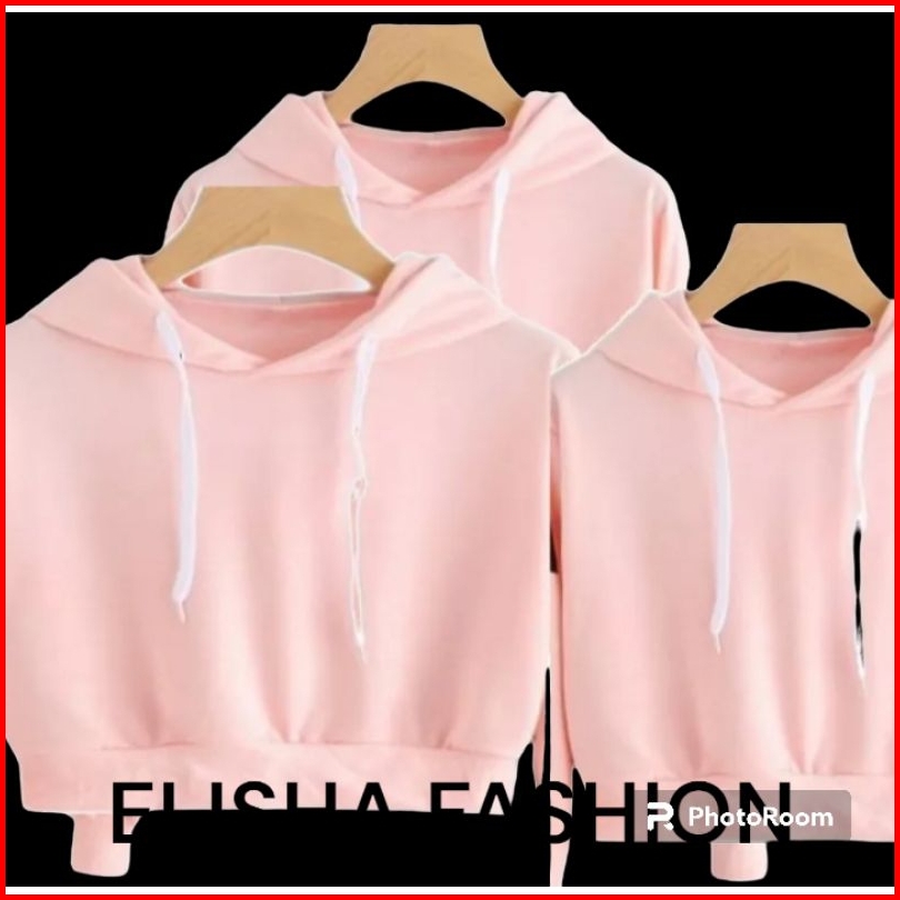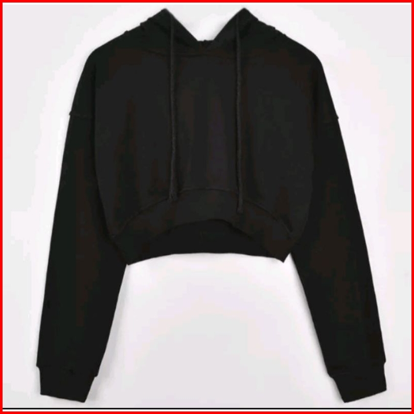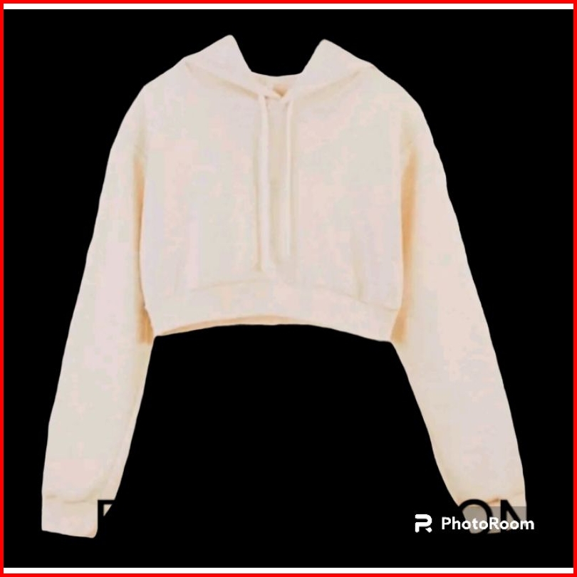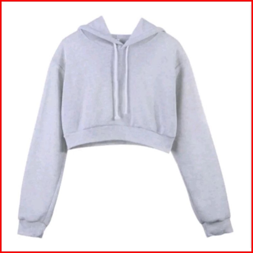 Sweater Crop Hoodie Wanita Plecce Tebal Nyaman