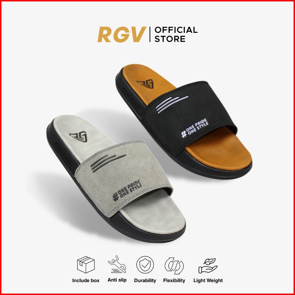 Rgv 39 - 43 Sandal Slide Pria Wanita Osaka Grey Black Osaka Tan Black - Sendal Selop Slip On Casual Pria Wanita