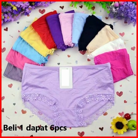 6pcs Celana Dalam Renda Import Size M L Xl Xxl Xxxl Bahan Katun Spandex