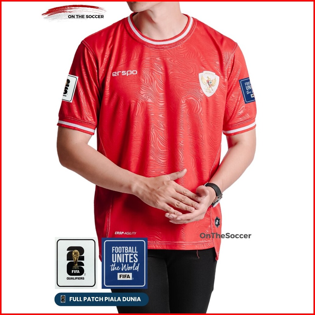 Jersey Timnas Indonesia Erspo Merah Home 2024 Big Over Size Pria Wanita Unisex Bahan Brazil Embos Terbaru Terlaris Onthe
