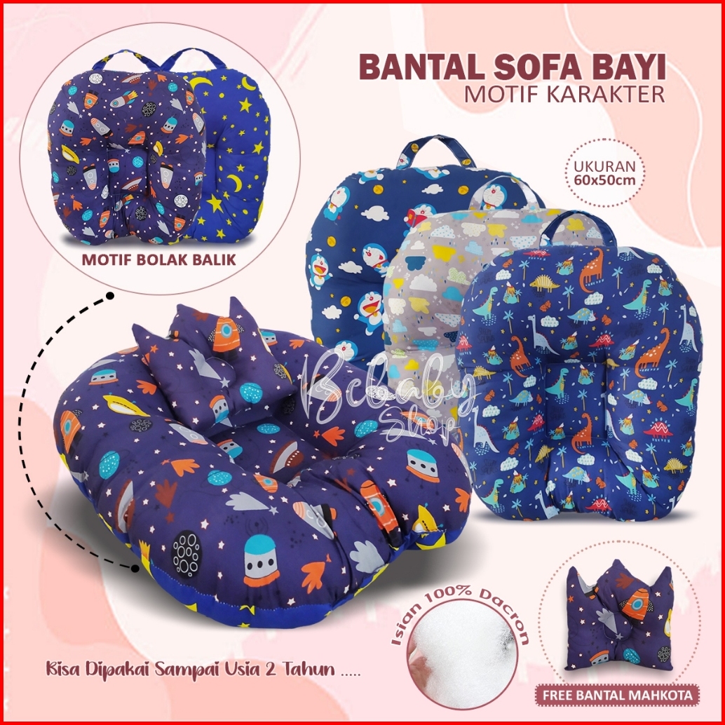 Bantal Sofa Bayi Jumbo Plus Bantal Mahkota Tempat Tidur Duduk Bayi Anti Gumoh Multifungsi Motif Karakter Bolak Balik