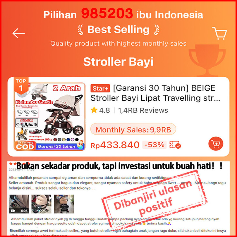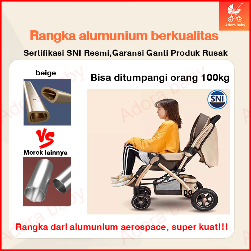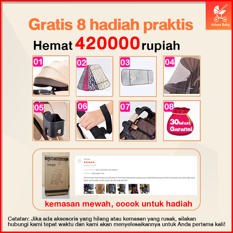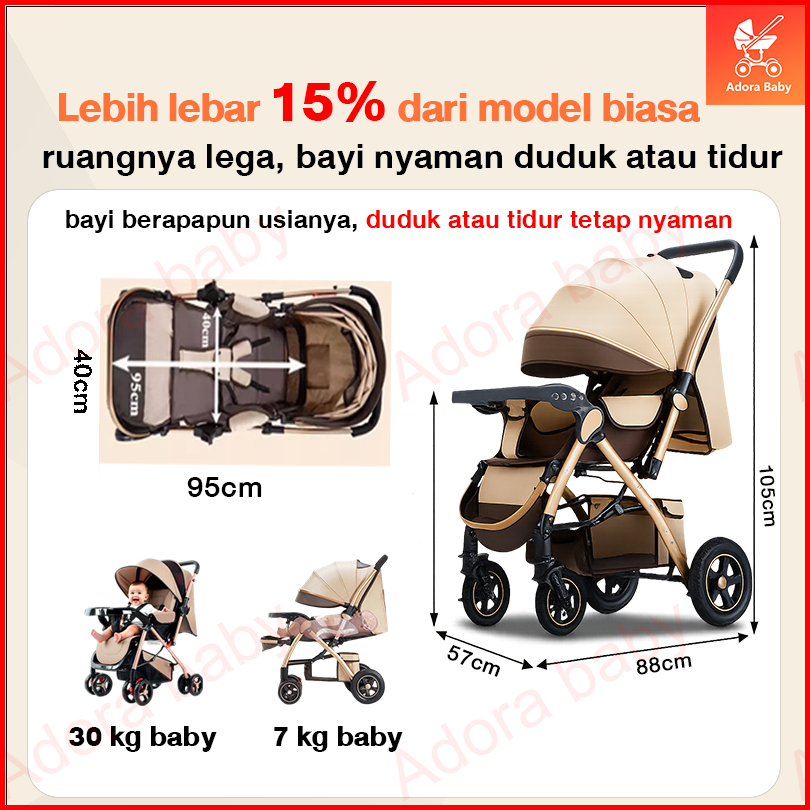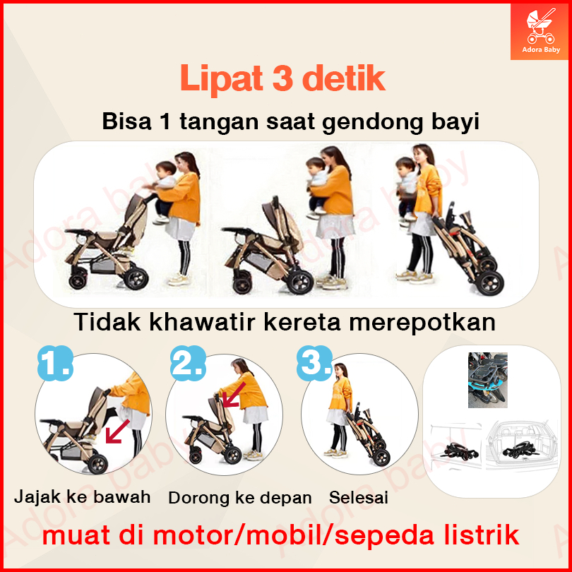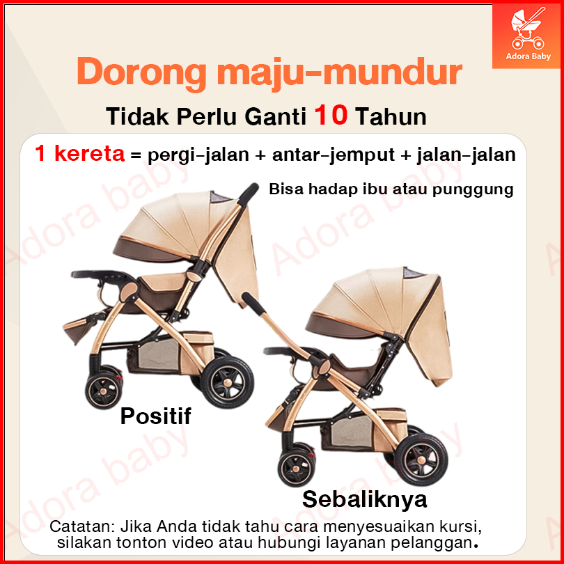 Garansi 30 Tahun Beige Stroller Bayi Kereta 2in1 Lipat Bisa Dua Arah Kursi Adjustable Newborn