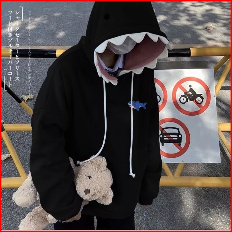 Jaket Sweater Wanita Lucu Funny Shark Bordir Sweater Hoodie Oversize